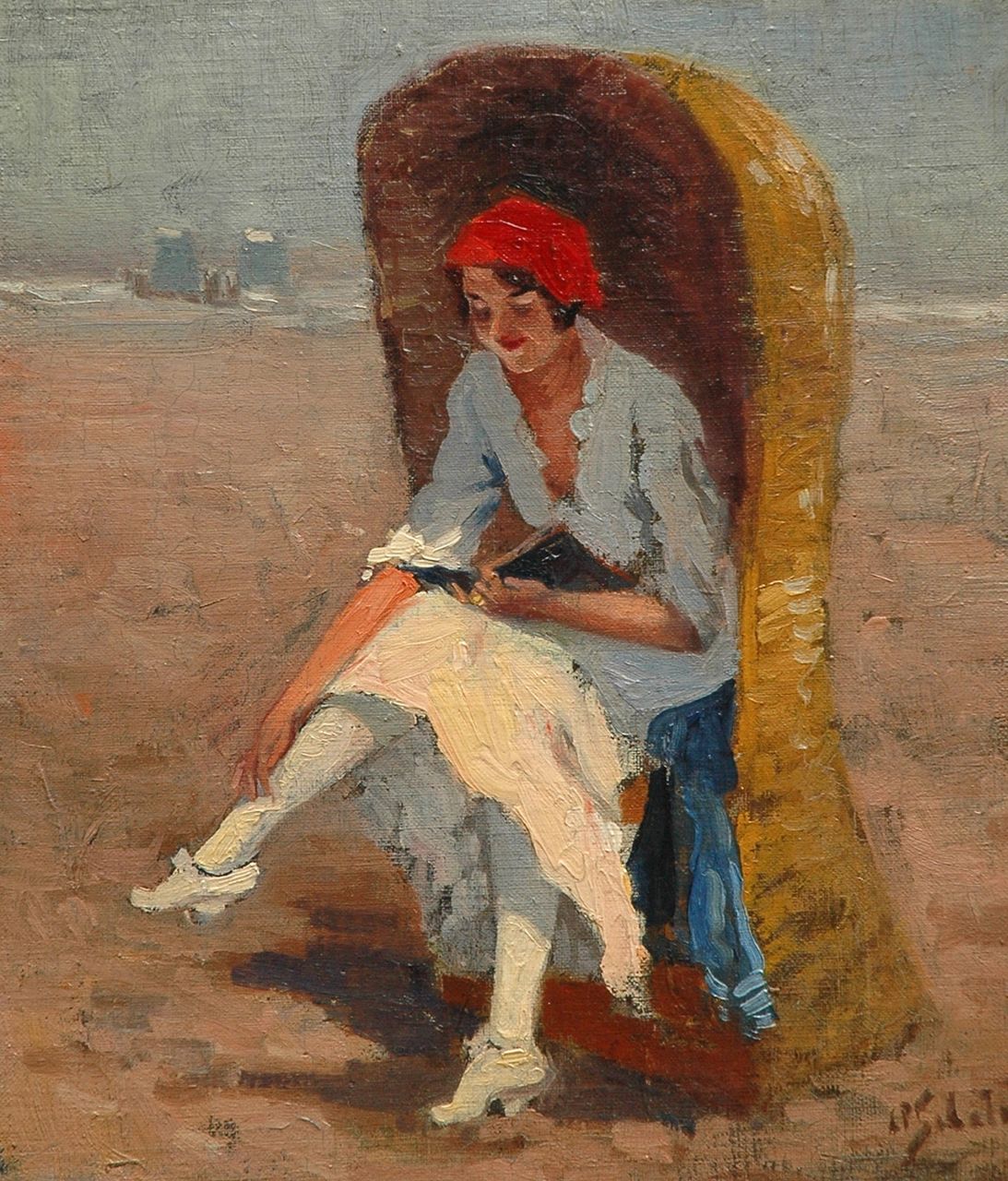 A.P. Schotel Kunstwerk • Gemälde • zuvor zu verkaufen Reading on the beach