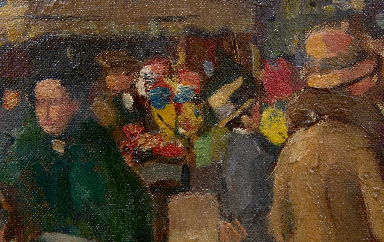 Der jung verstorbene Haager Maler Abraham Fresco hinterließ ein kleines, aber feines Oeuvre. Bereits in der Grundschule fiel sein zeichnerisches Talent auf und auf Anraten seiner Lehrer ging er zunächst an die Koninklijke Academie van Beeldende Kunsten in Den Haag und dann an die Rijksacademie van Beeldenden Kunst in Amsterdam. 1928 – Abraham war damals 25 Jahre alt – wurde er in der jüdischen Wochenzeitung De Vrijdagavond als „sehr bescheidener, ernsthafter, fleißiger junger Mann“ beschrieben, der eine „große Zukunft“ hatte. Anfangs war Fresco hauptsächlich als Porträtmaler tätig, konzentrierte sich später aber immer mehr auf das Malen von Stadtleben und Genreszenen. Seine ruhigen Plätze, belebten Einkaufsstraßen und Darstellungen von Volksfesten sind geprägt von kräftigem Pinselstrich und leuchtenden Farben. Abraham Fresco, seine Frau Debora Engelsman und ihre Tochter Marga wurden 1942 verhaftet und deportiert. Sie wurden am 19. November 1942 in Auschwitz ermordet.