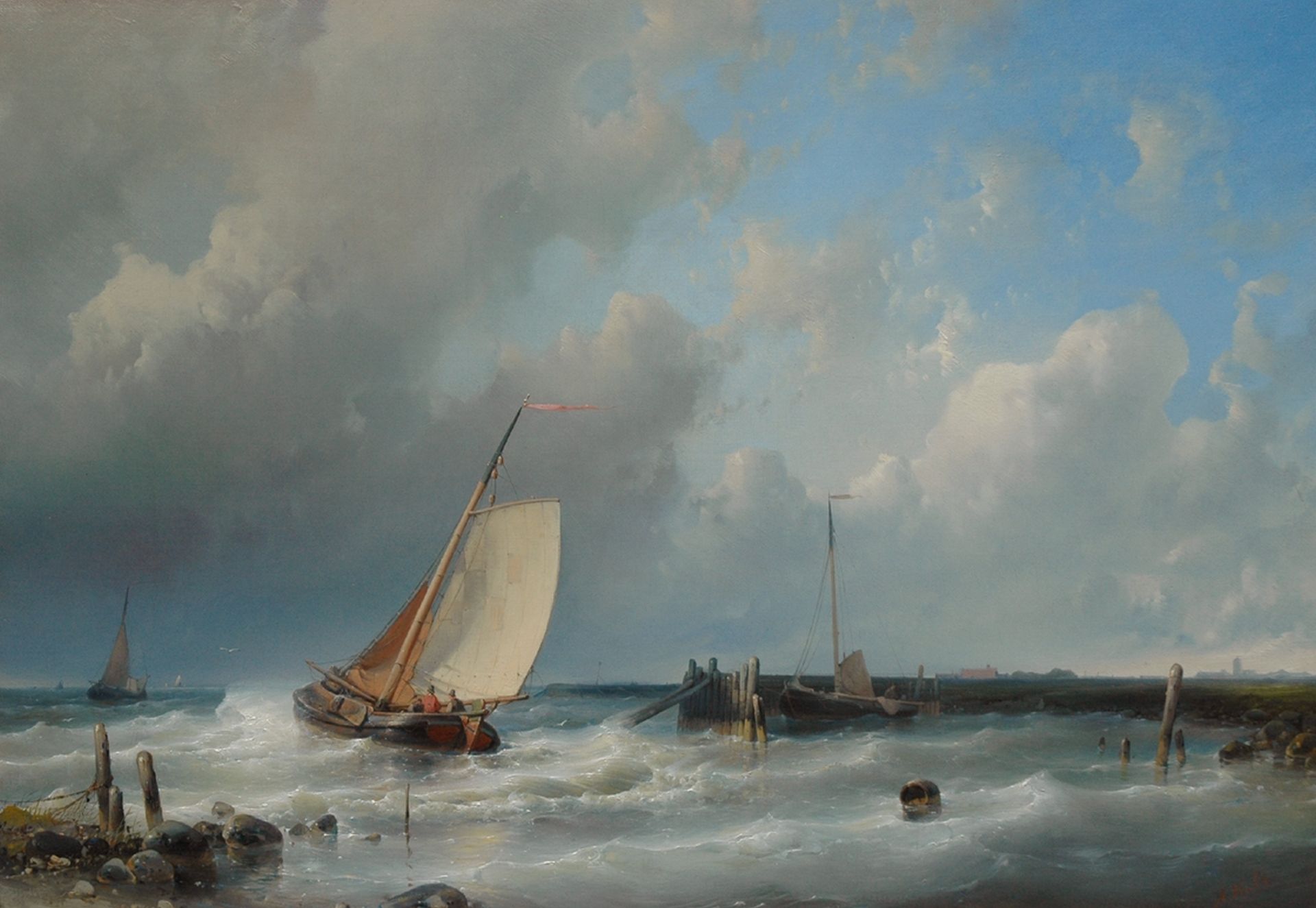 Abraham Hulk, Maler und Abenteurer, wurde als sechstes Kind des Textilhändlers Hendrik Hulk in London geboren. Er und sein jüngster Bruder Johannes Frederik Hulk, der nach der Rückkehr der Familie in Amsterdam geboren wurde, wählten beide den Beruf des Malers. Abraham erhielt seine Ausbildung an der Königlichen Akademie in Amsterdam und unternahm dann 1833 eine Reise mit einem Zweimaster nach Amerika, wo er einige Jahre blieb. Dort konzentrierte er sich hauptsächlich auf das Malen von Porträts. 1835 ließ er sich wieder in den Niederlanden nieder, wo er bis 1870 blieb und sich auf die Malerei von Meereslandschaften spezialisierte, sowohl bei ruhigem als auch bei stürmischem Wetter. Sein Stil ist romantisch und mit dem von J.C. Schotel und Louis Meijer verwandt. Hulk ging es darum, ein idealisiertes atmosphärisches Bild von Schiffen auf See bei unterschiedlichen Wetterbedingungen darzustellen. 1870 zog er endgültig nach London, wo er ein erfolgreicher Marinemaler wurde. Er starb 1897 in Zevenaar während eines Besuchs in den Niederlanden. Drei seiner vier Söhne, Hendrik, Abraham Jr. und Willem Frederik, würden wie ihr Vater Maler werden.