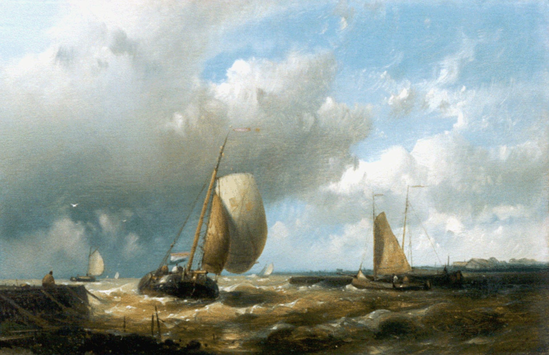 Abraham Hulk Kunstwerk • Gemälde • zuvor zu verkaufen Sailing vessels entering harbour