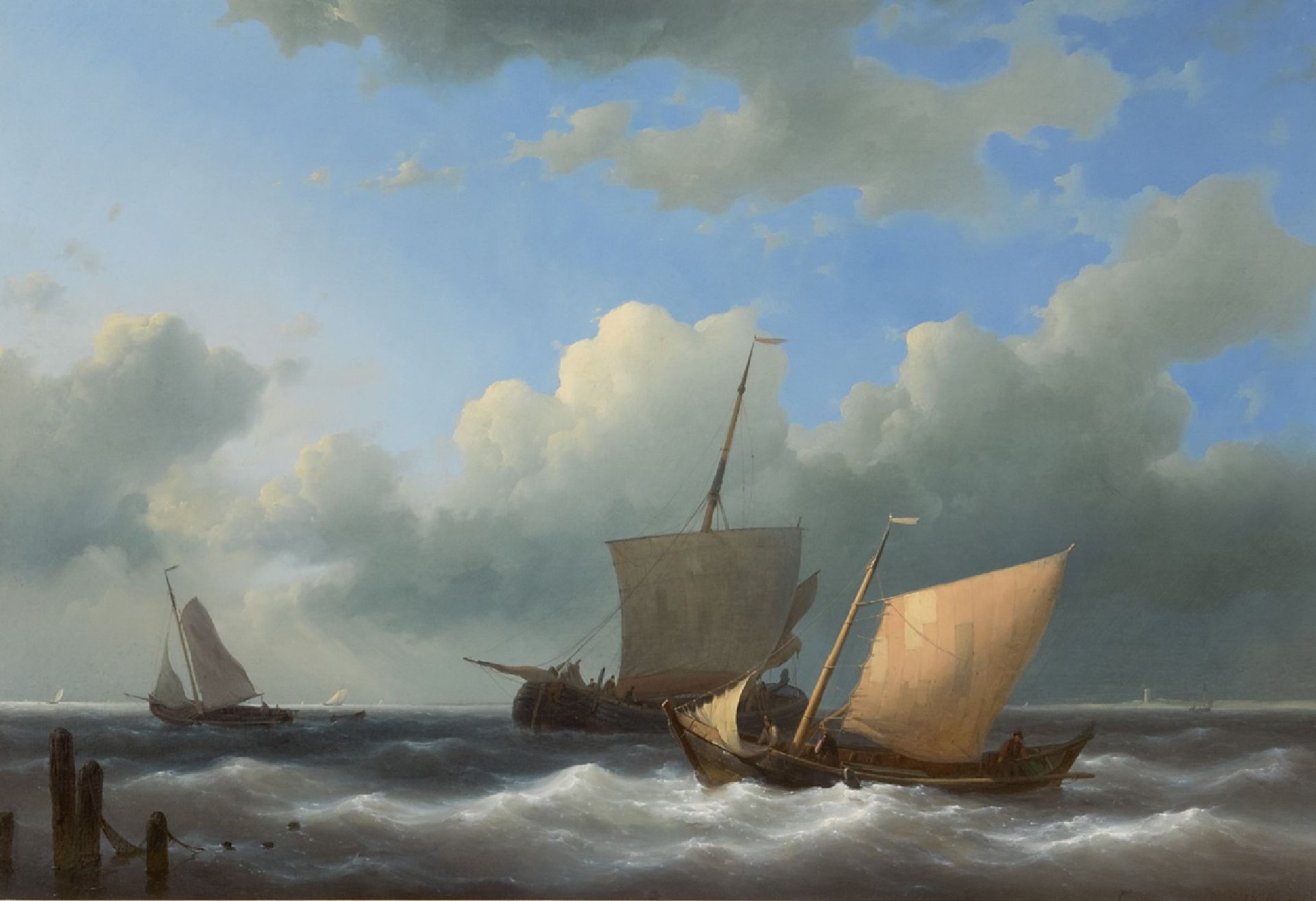 Abraham Hulk Kunstwerk • Gemälde • zu verkaufen Segelboote vor dem Hafeneingang