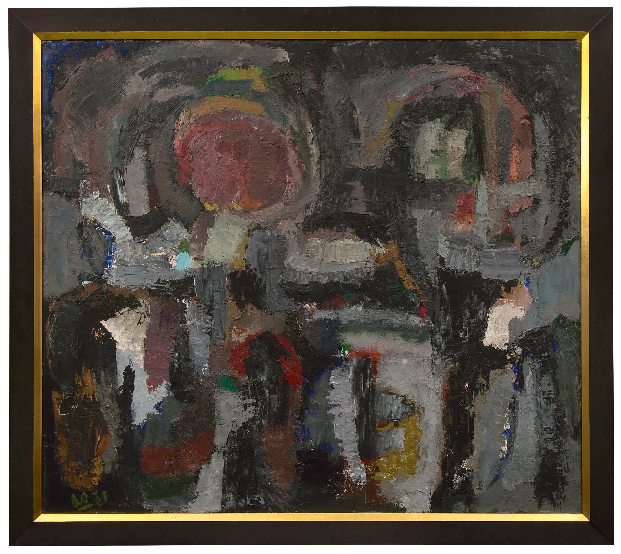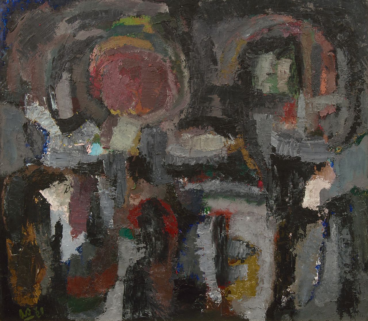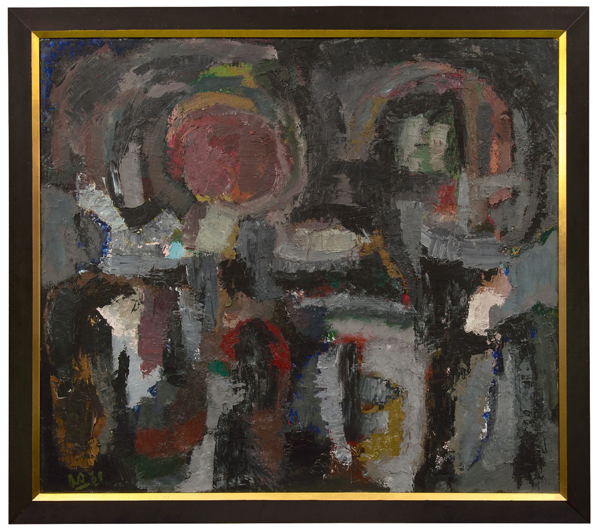 Öl auf Holzfaser 107,4 x 122,3 cm, Unterzeichnet l.u. mit Initialen und verso mit vollem Namen und datiert '60