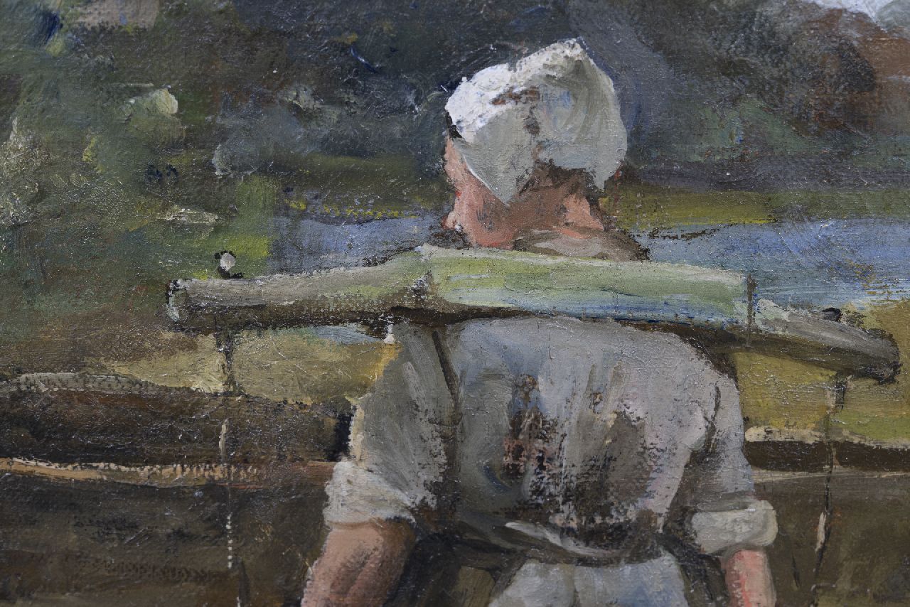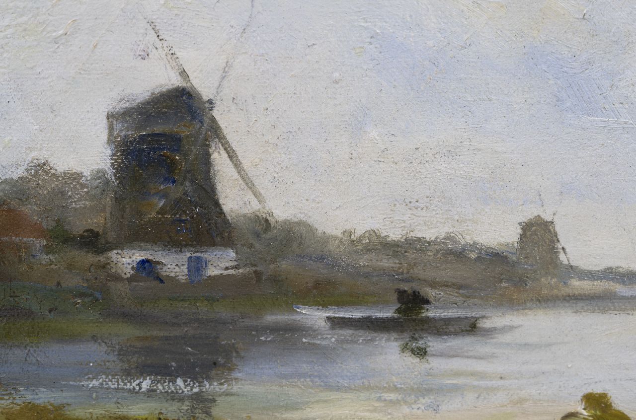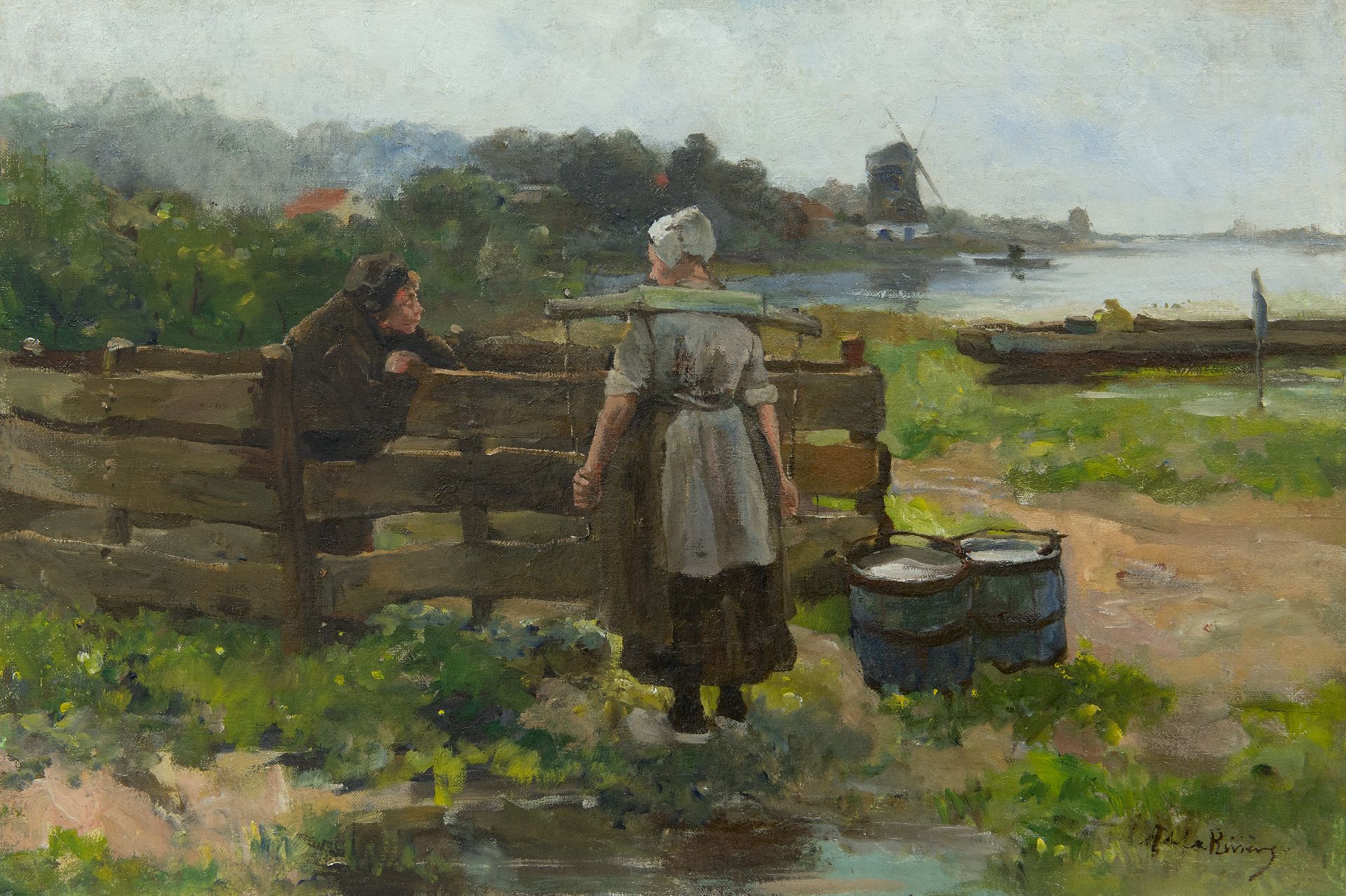 Zwischen etwa 1880 und 1940 malte Adriaan de la Rivière in einem leichtfüßigen, impressionistischen Stil stark erzählende Genre-Stücke des Alltags in der Stadt und auf dem Land. Sein Oeuvre umfasst Stadtansichte mit vielen Figuren, Gasthauseszenen, Marktstände mit Verkäufern aller Art, Bauern, die auf den Feldern arbeiten, und Parkszenen. Der Maler wurde an der Akademie von Rotterdam ausgebildet und studierte mit einem Stipendium in München. Zwischen 1894 und 1896 war er Vorstandsmitglied des Kunstkrings.
