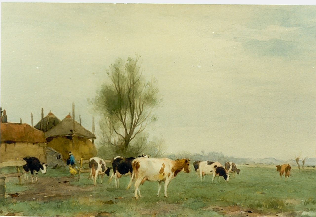 Adriaan Groenewegen Kunstwerk • Aquarell • Zeichnung • zuvor zu verkaufen Cows in a meadow