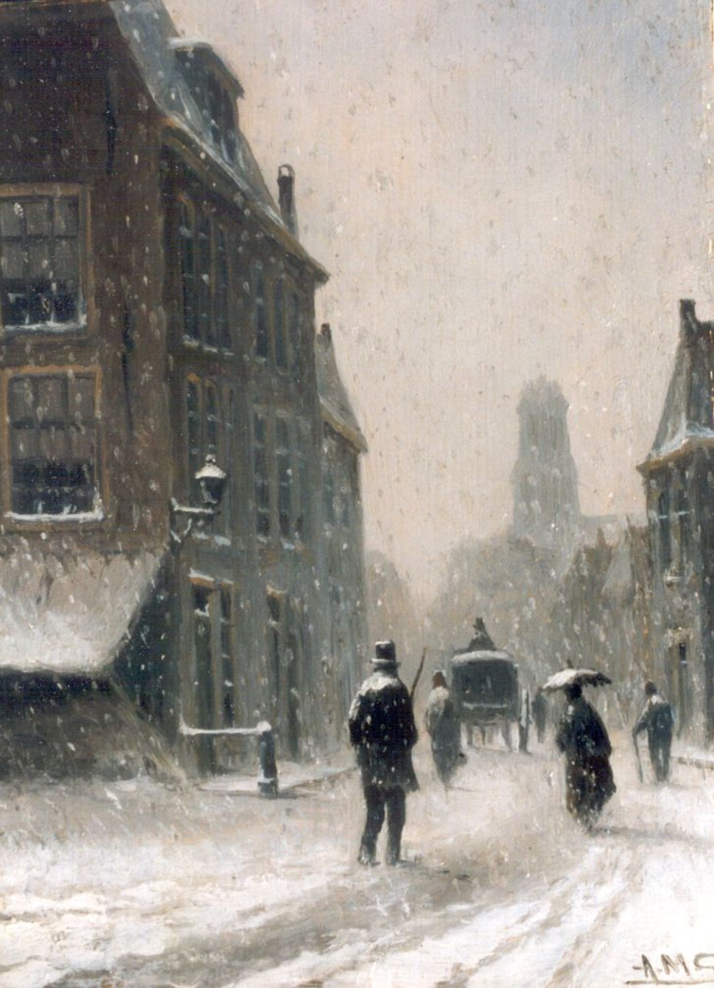 Adriaan Marinus Geijp Kunstwerk • Gemälde • zuvor zu verkaufen A snow-covered town