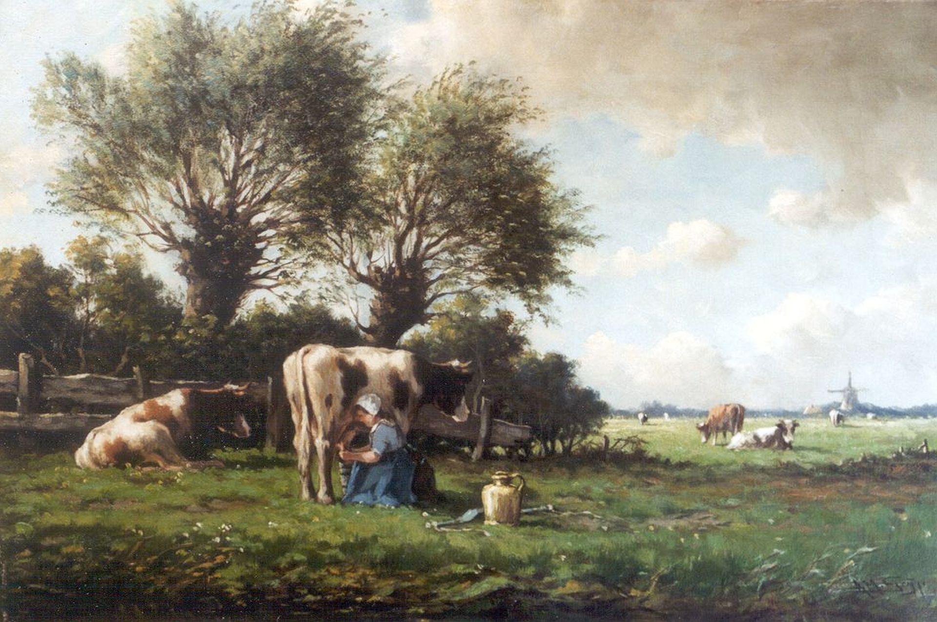 Adriaan Marinus Geijp Kunstwerk • Gemälde • zuvor zu verkaufen Milk-maid at work