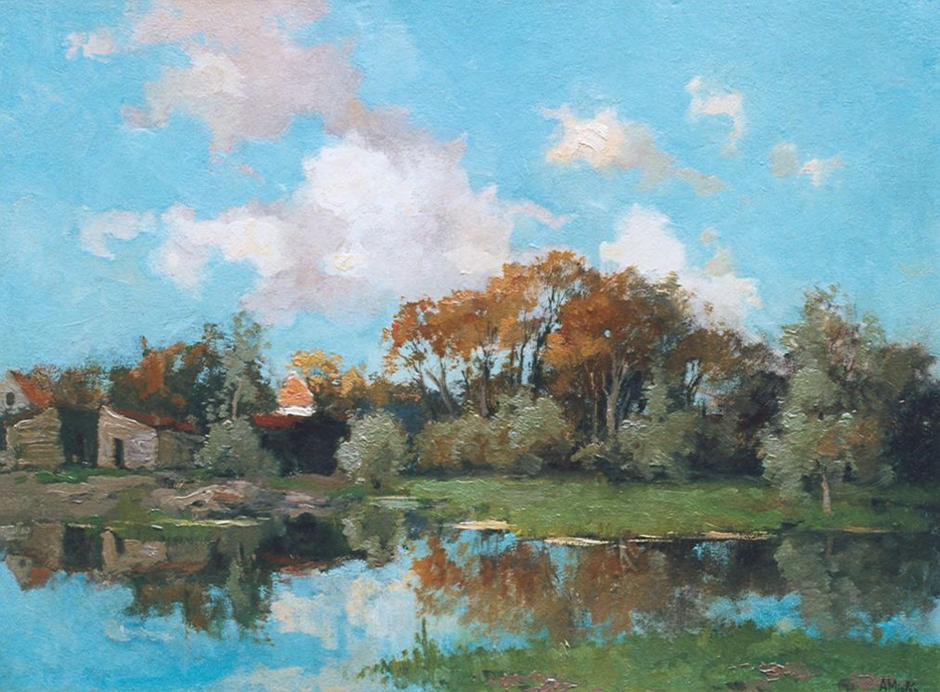 Adriaan Miolée Kunstwerk • Gemälde • zuvor zu verkaufen A farmhouse along a stream