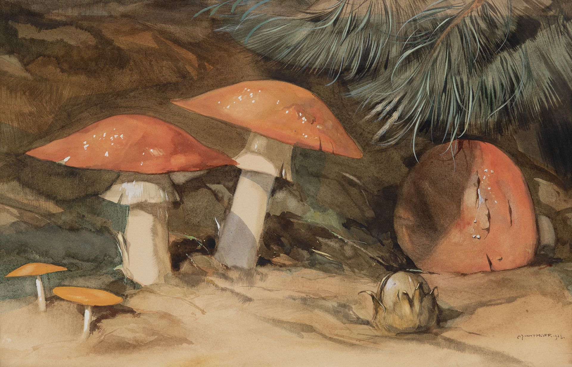 Adriaan van 't Hoff Kunstwerk • Aquarell • Zeichnung • zu verkaufen Fliegenpilze