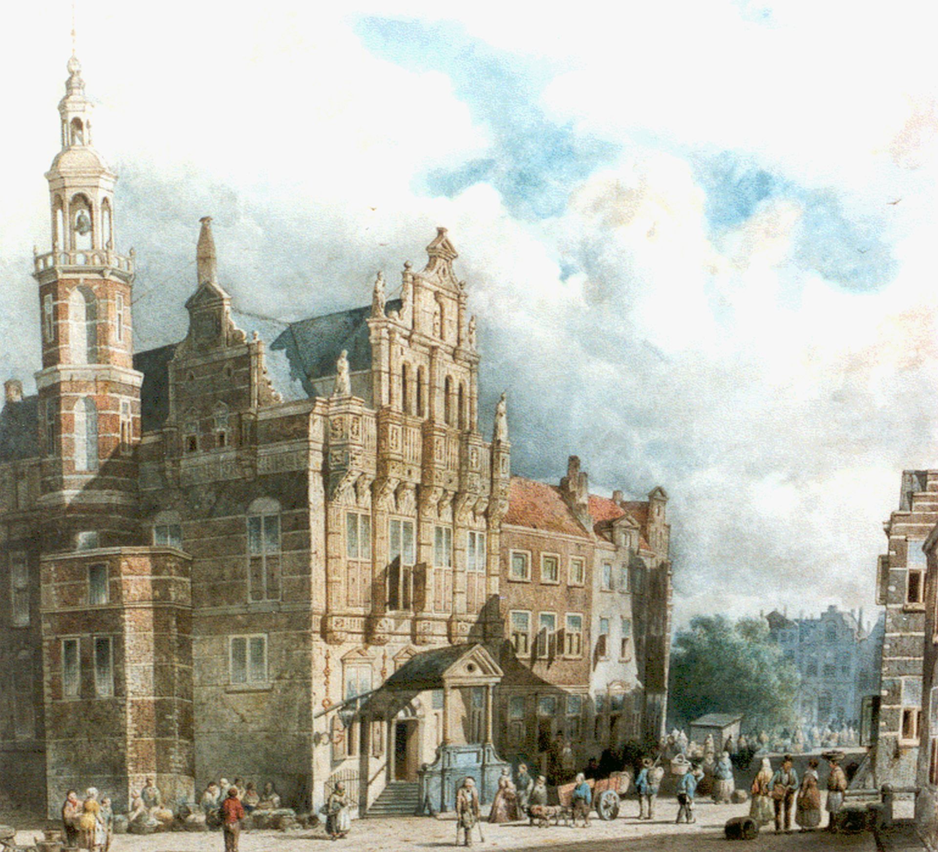 Adriaan Vrolijk Kunstwerk • Aquarell • Zeichnung • zuvor zu verkaufen Figures on a village square, The Hague