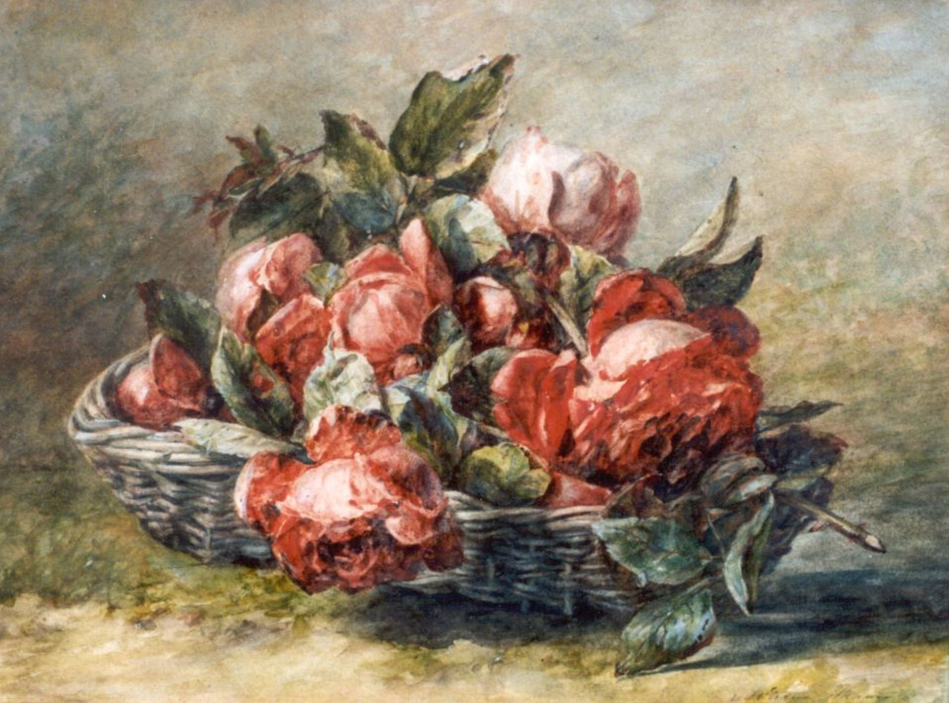 Adriana Haanen Kunstwerk • Aquarell • Zeichnung • zuvor zu verkaufen Red roses in a basket