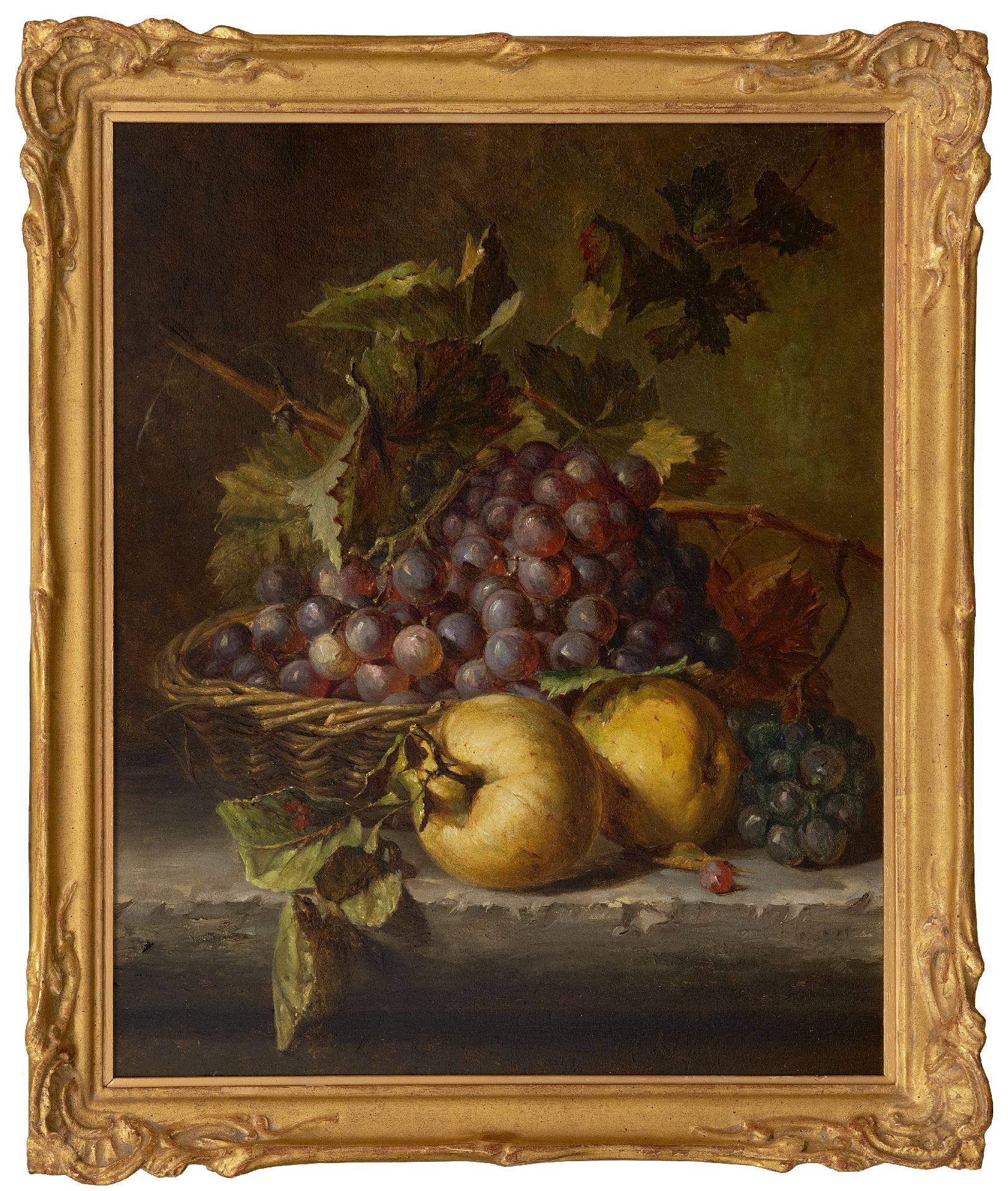 Adriana Haanen Kunstwerk • Gemälde • zu verkaufen Stilleben mit Trauben in einem Weidenkorb