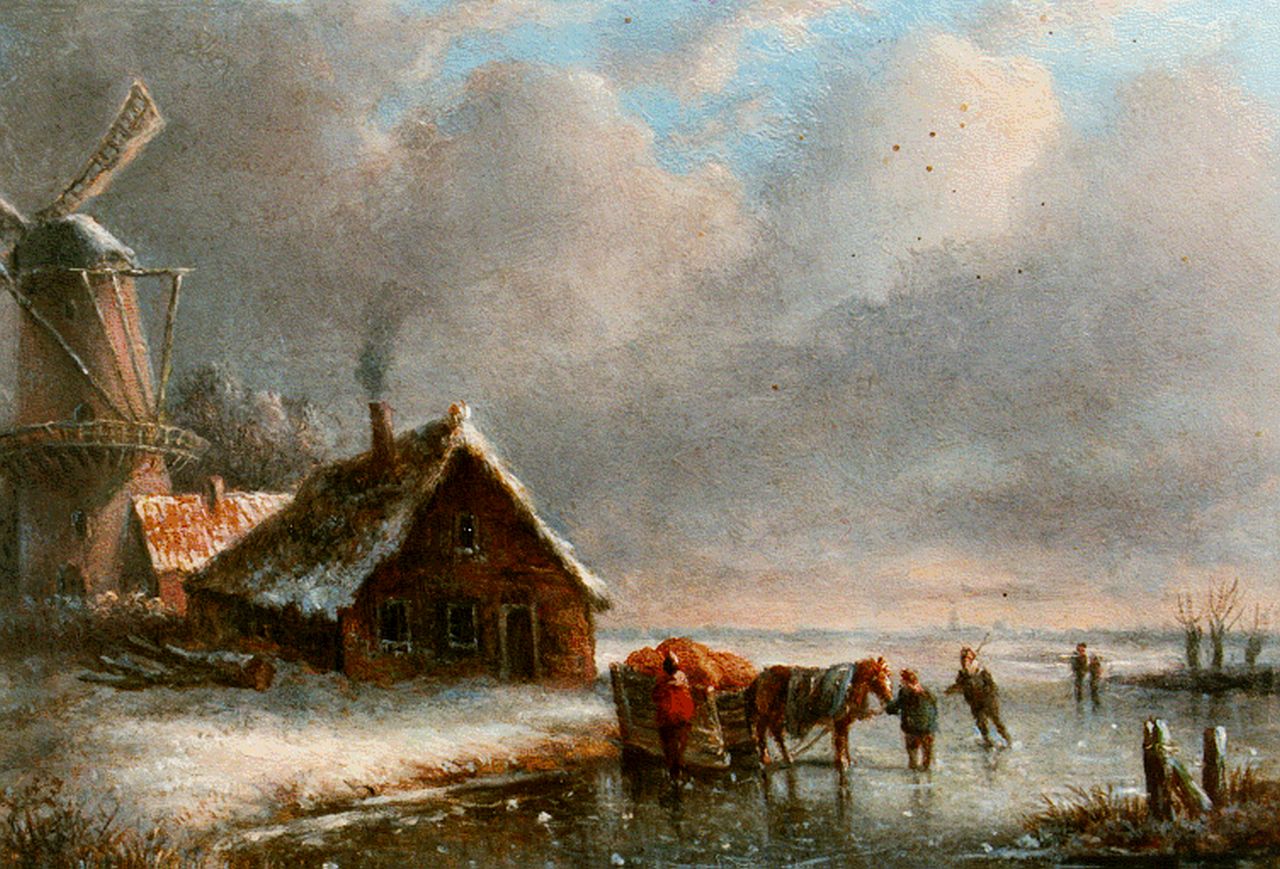 Adrianus Cornelis Slingerland Kunstwerk • Gemälde • zuvor zu verkaufen A winter landscape with a horse-sledge