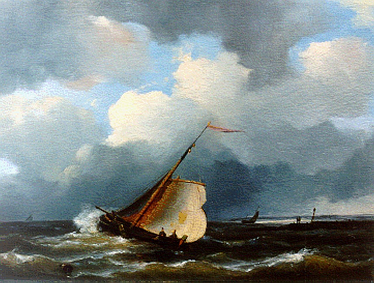 Adrianus David Hilleveld Kunstwerk • Gemälde • zuvor zu verkaufen A sailing boat in a stiff breeze