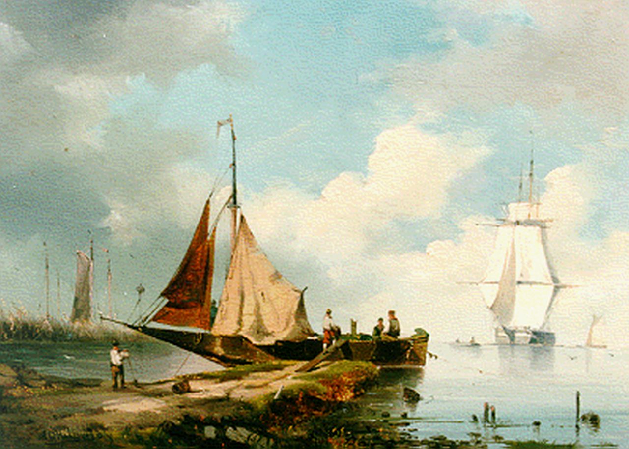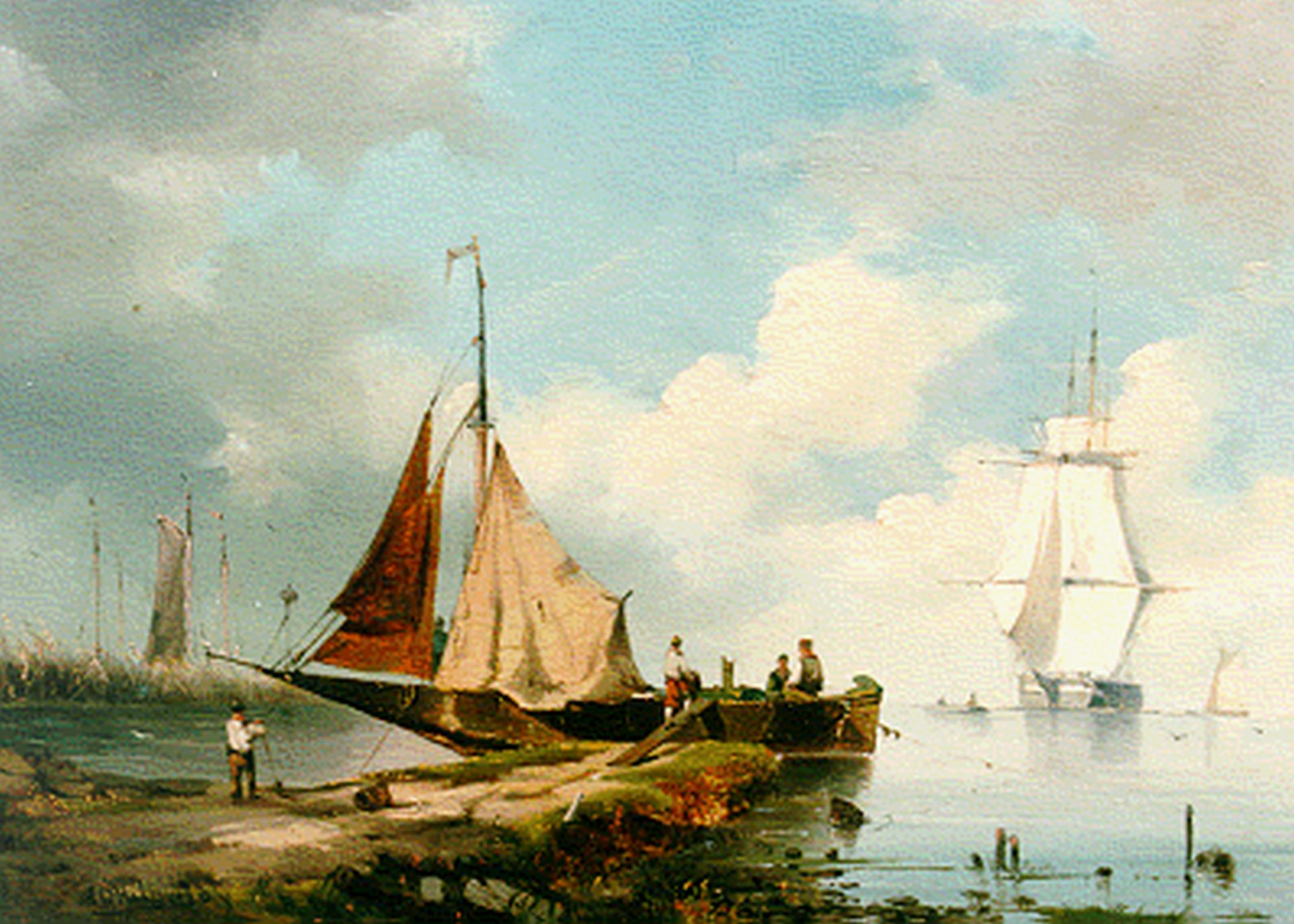 Adrianus David Hilleveld Kunstwerk • Gemälde • zuvor zu verkaufen Moored sailing vessel
