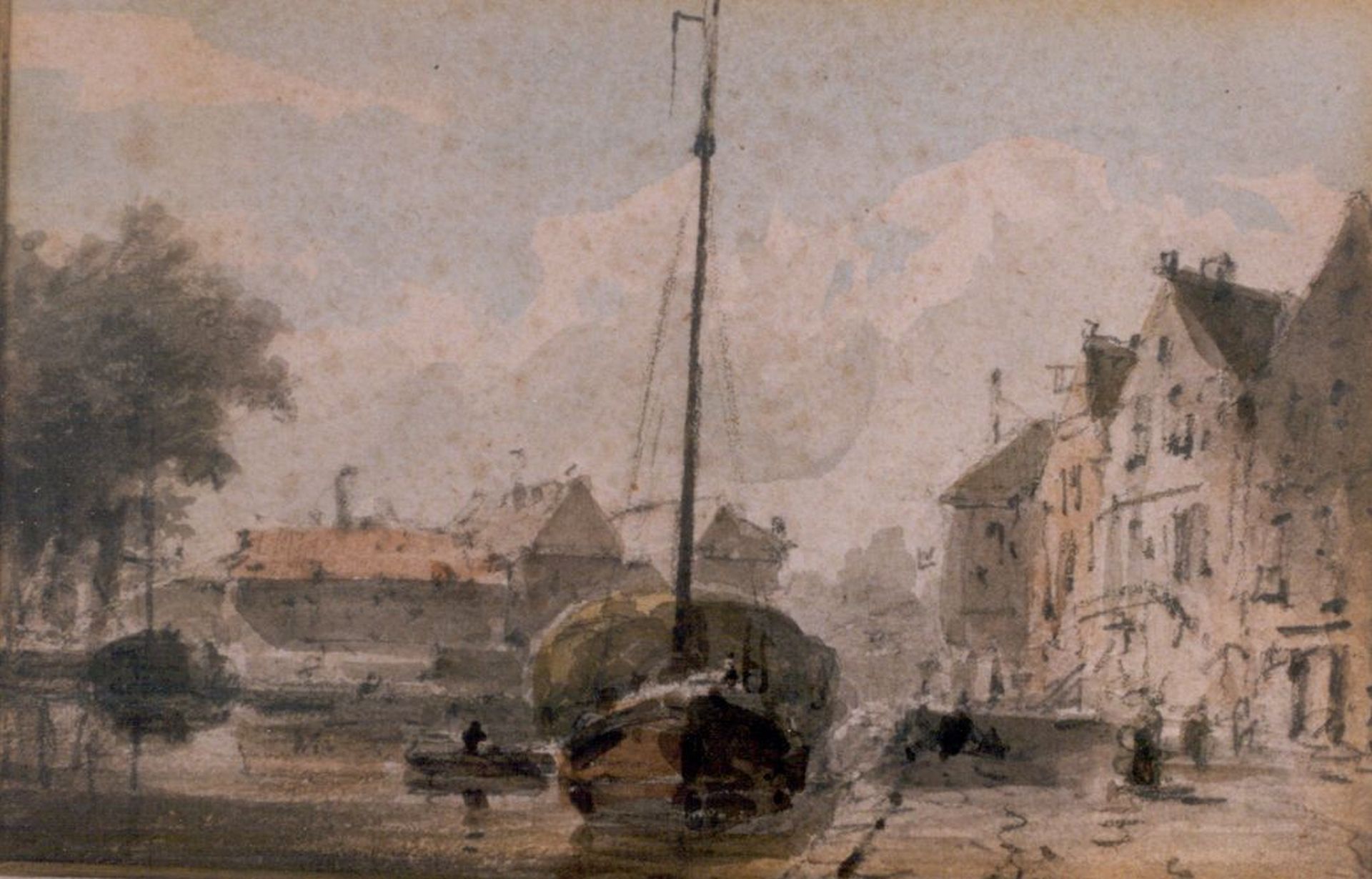 Adrianus Eversen Kunstwerk • Aquarell • Zeichnung • zuvor zu verkaufen Moored haybarge