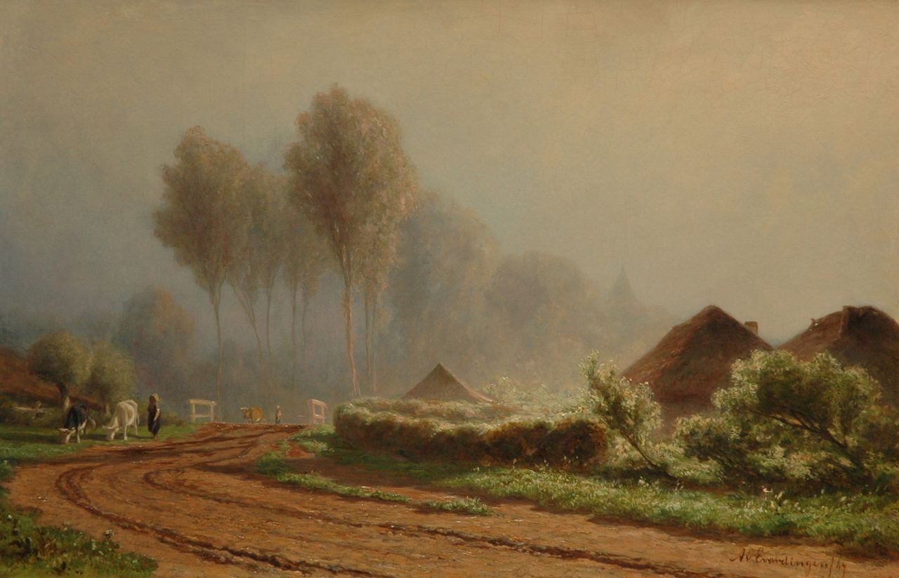 Der aus Utrecht stammende Adrianus van Everdingen lernte in den 1850er Jahren bei J.W. Bilders im Dorf Oosterbeek. Dort verbrachte er viele Jahrzehnte lang die Sommer und zog mit dem lebhaften Kreis von Malern rund um Bilders ins Freie. Van Everdingen malte hauptsächlich Landschaften und arbeitete auch in der Gegend um Loosdrecht und Kortenhoef.