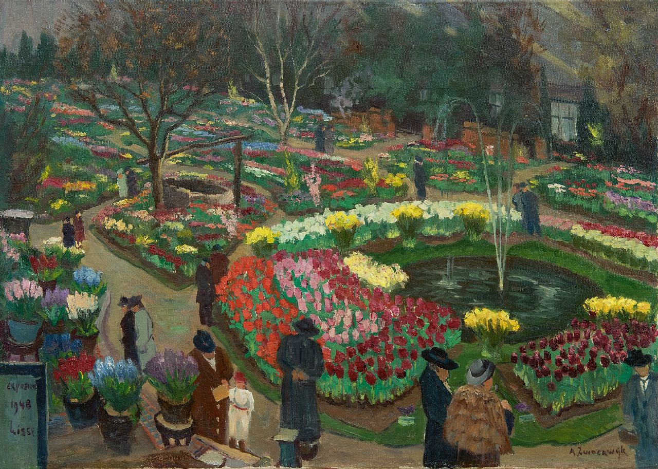 Adrianus Zuiderwijk Kunstwerk • Gemälde • zuvor zu verkaufen Blumenausstellung Lenteflora in Lisse, 1948