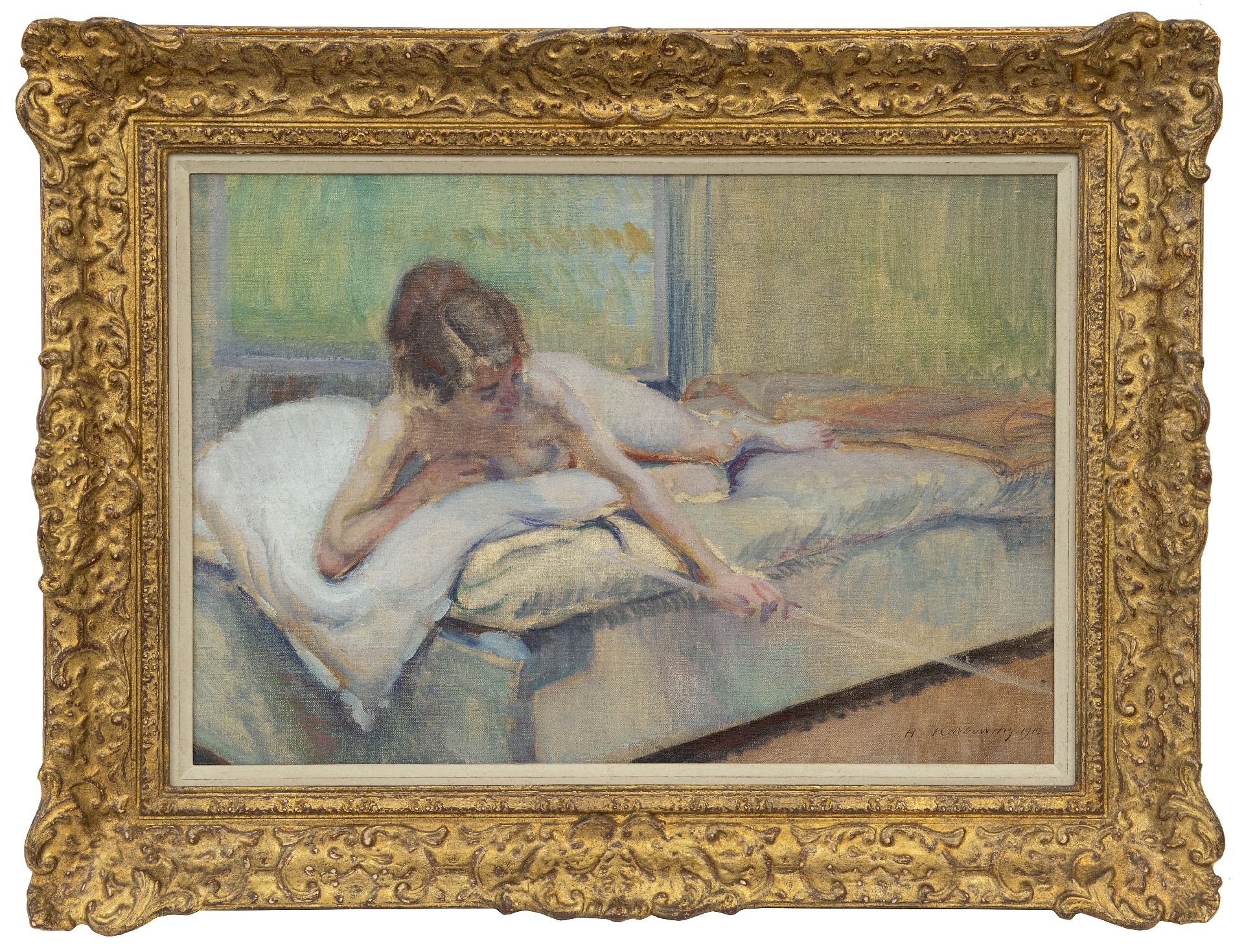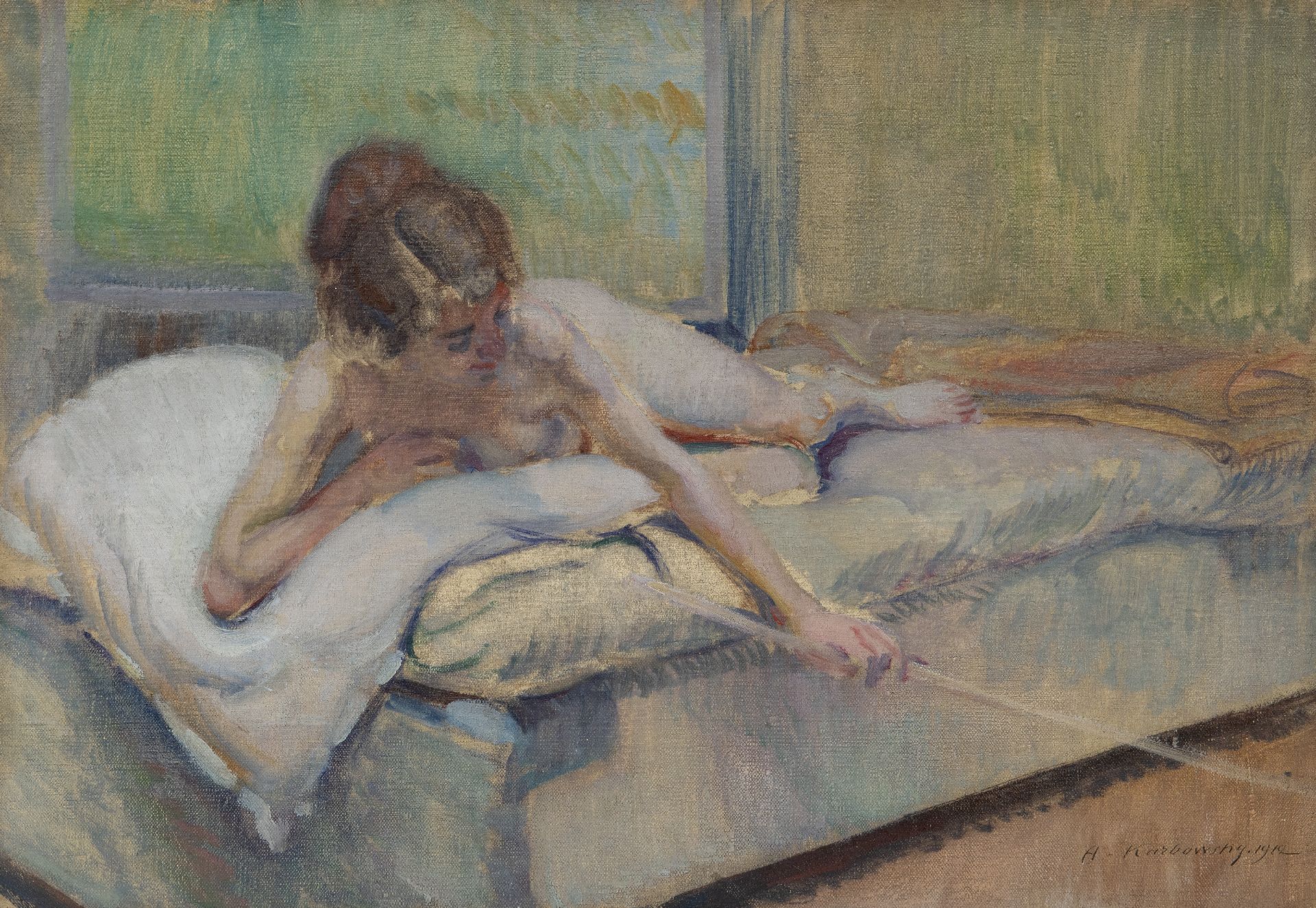 Adrien Karbowsky Kunstwerk • Gemälde • zuvor zu verkaufen Weiblicher Akt auf einem Bett