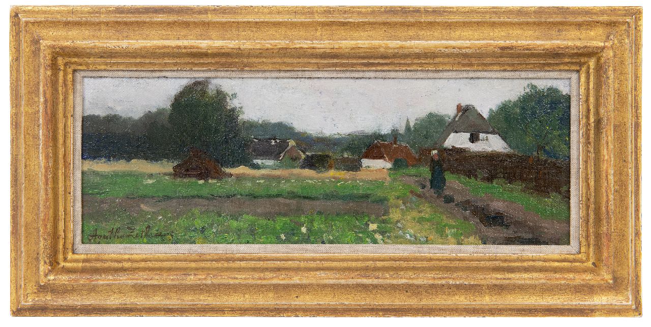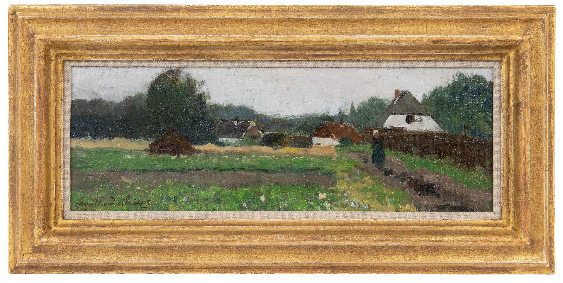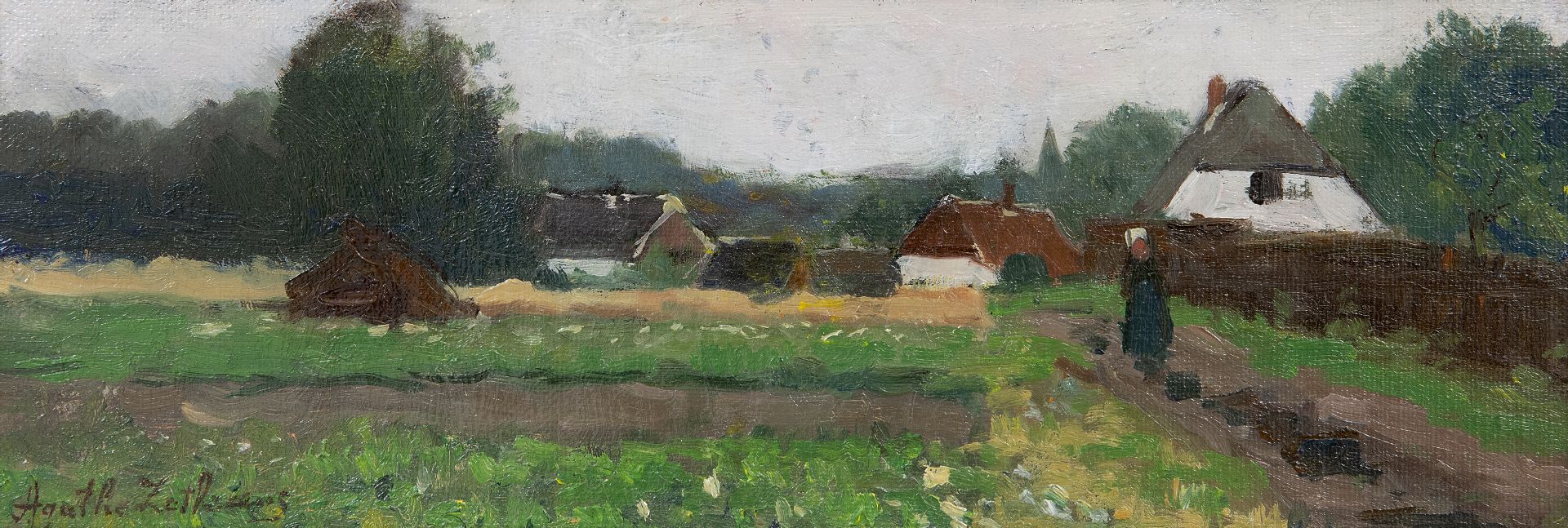 Agatha Zethraeus Kunstwerk • Gemälde • zu verkaufen Dorfansicht mit Bauernhof