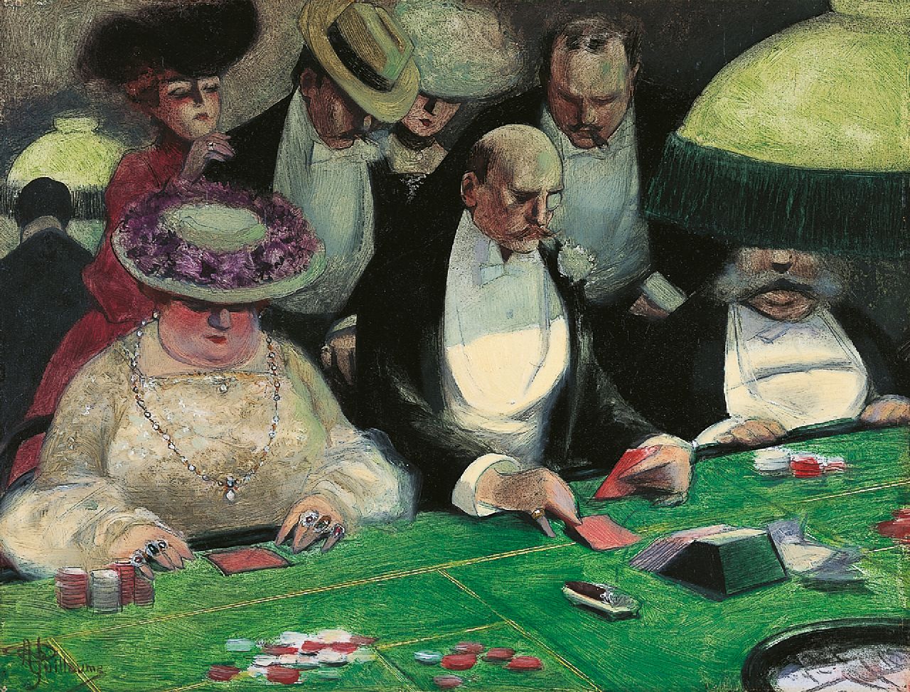 Albert Guillaume Kunstwerk • Gemälde • zuvor zu verkaufen Spannung am Baccarattisch