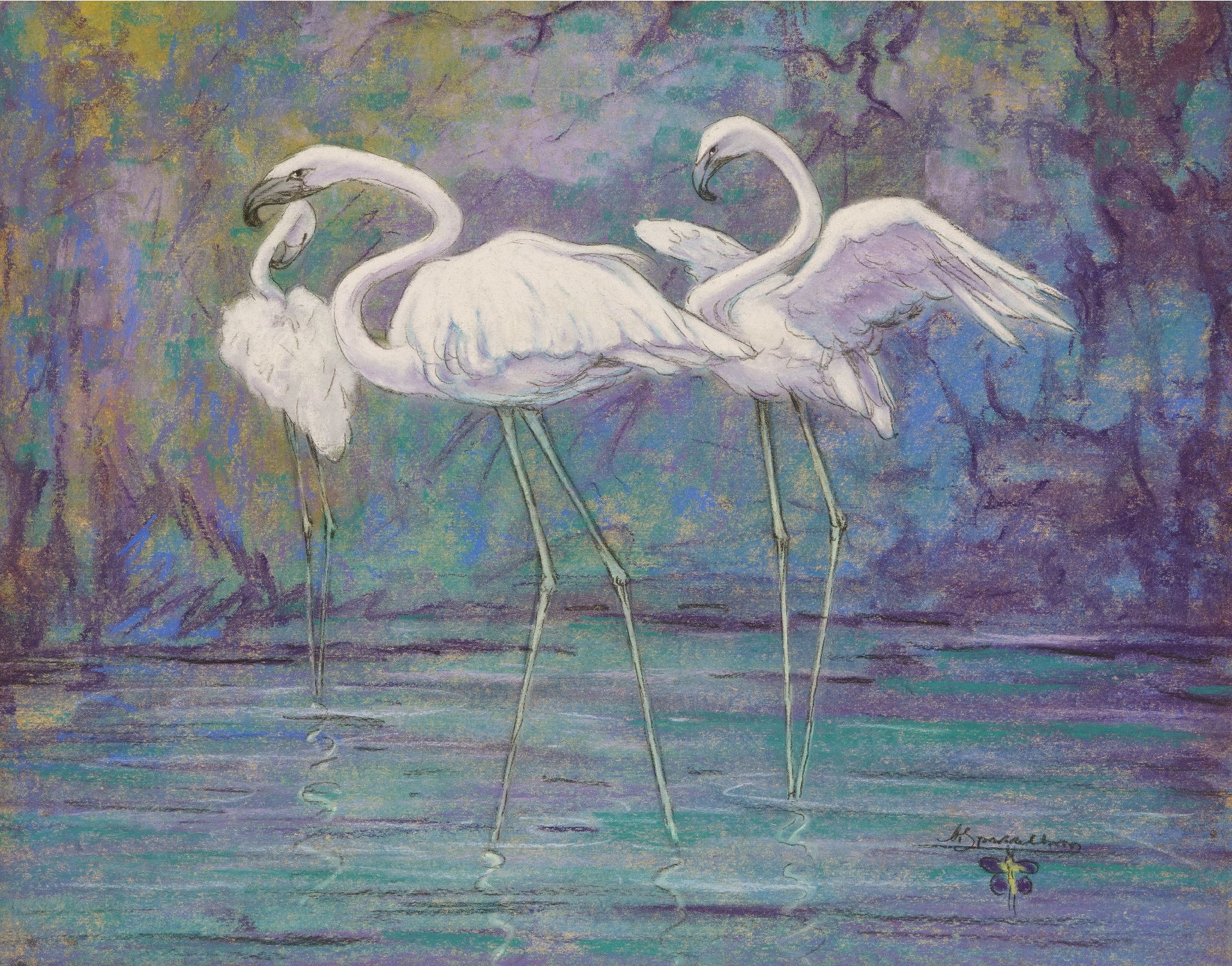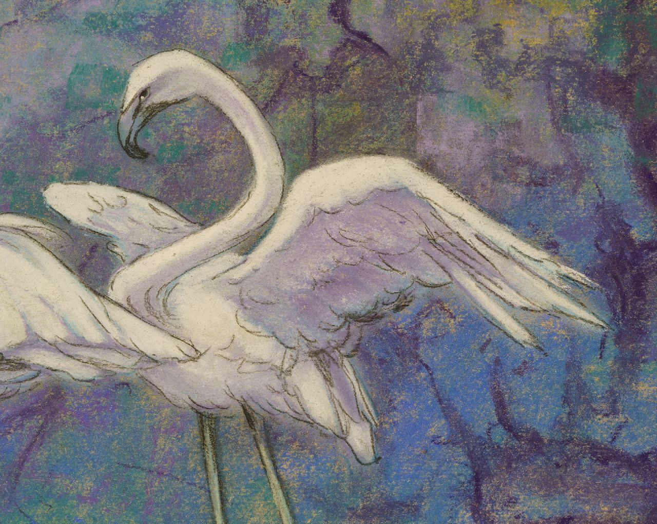 Albert Klein Sprokkelhorst Kunstwerk • Aquarell • Zeichnung • zu verkaufen Flamingos