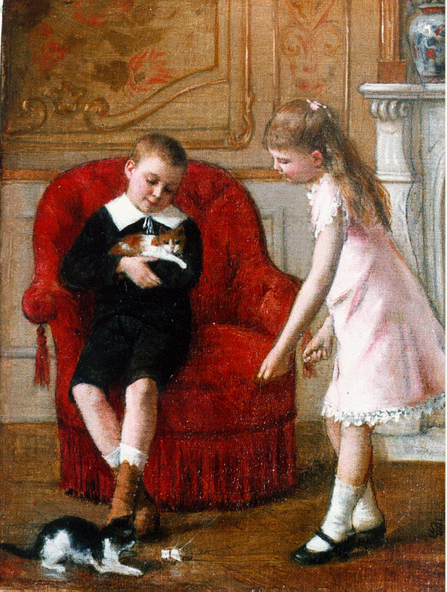 Albert Roosenboom Kunstwerk • Gemälde • zuvor zu verkaufen Playing with the kittens