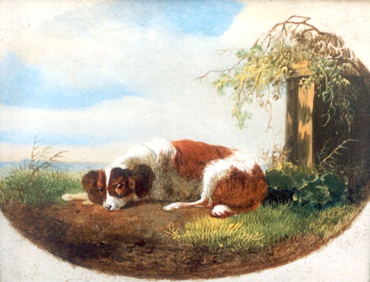 Albertus Verhoesen Kunstwerk • Gemälde • zuvor zu verkaufen A resting dog