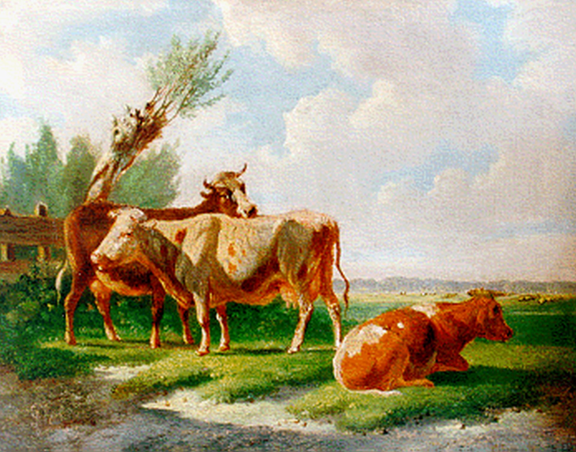 Albertus Verhoesen Kunstwerk • Gemälde • zuvor zu verkaufen Cattle in a meadow