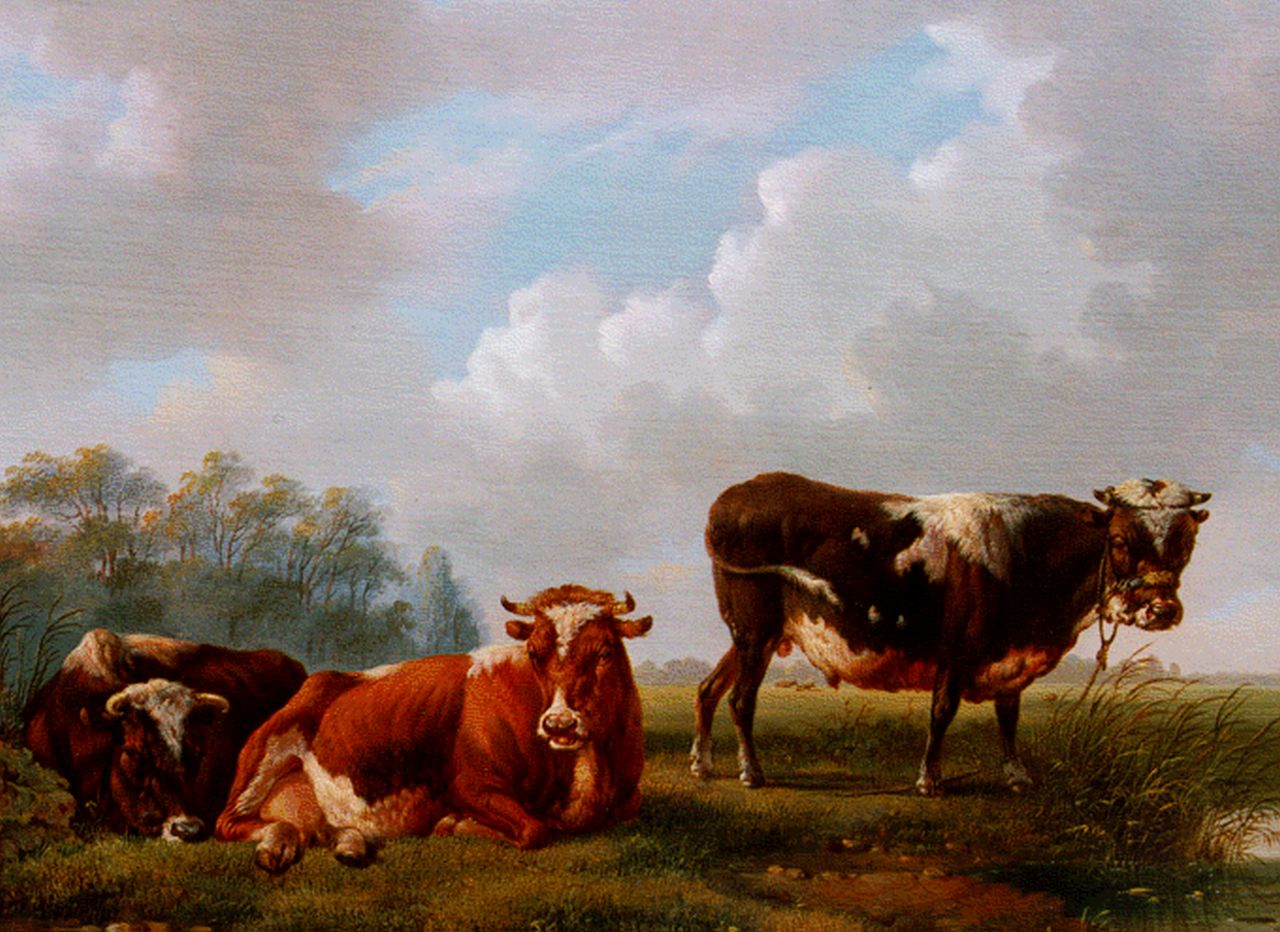 Albertus Verhoesen Kunstwerk • Gemälde • zuvor zu verkaufen Cattle in meadow