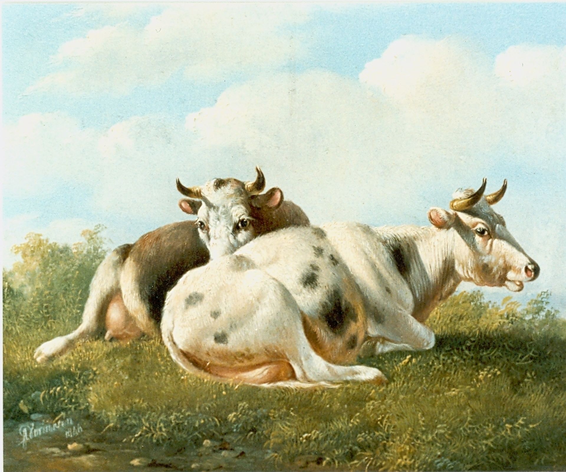 Albertus Verhoesen Kunstwerk • Gemälde • zuvor zu verkaufen Cows in a meadow