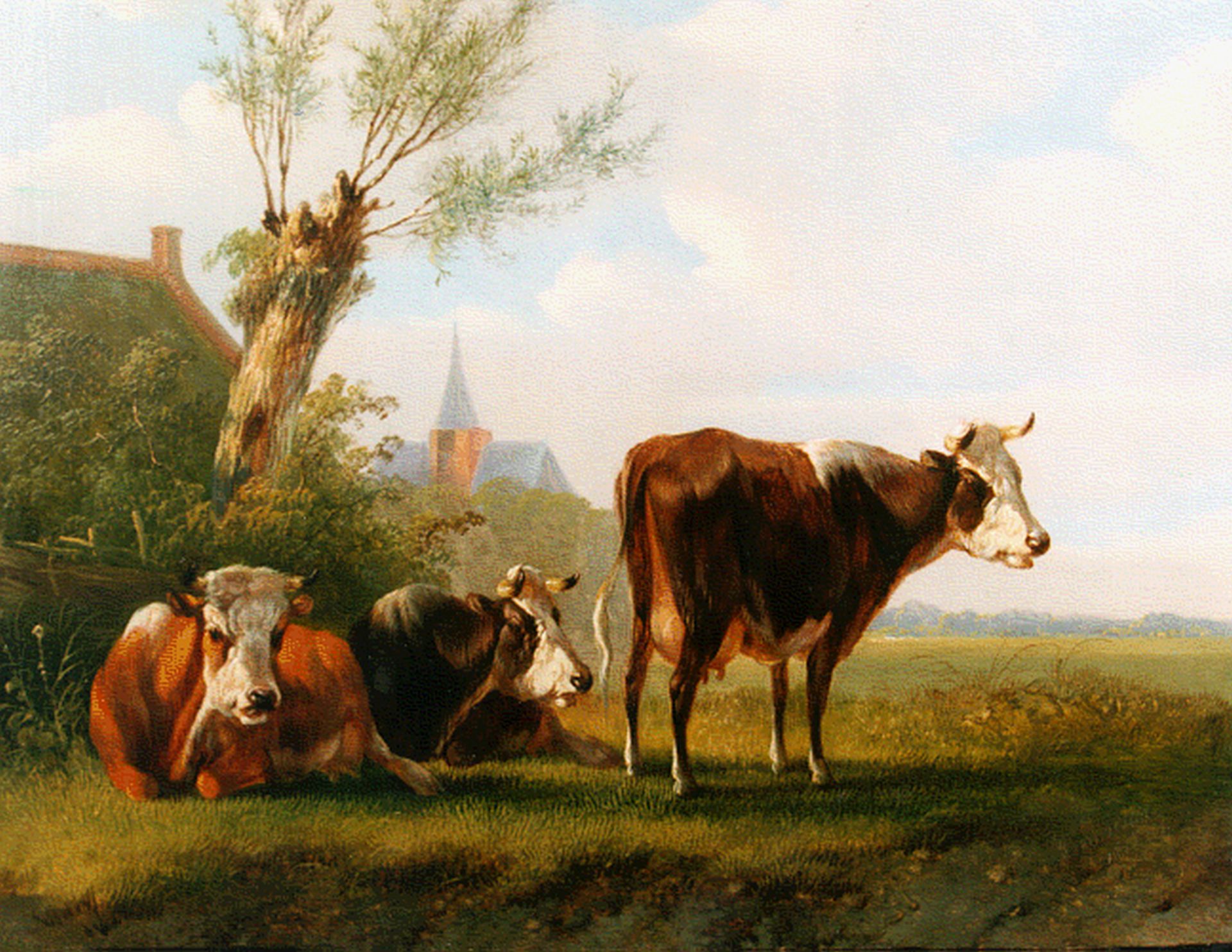 Albertus Verhoesen Kunstwerk • Gemälde • zuvor zu verkaufen Cows in a summer landscape