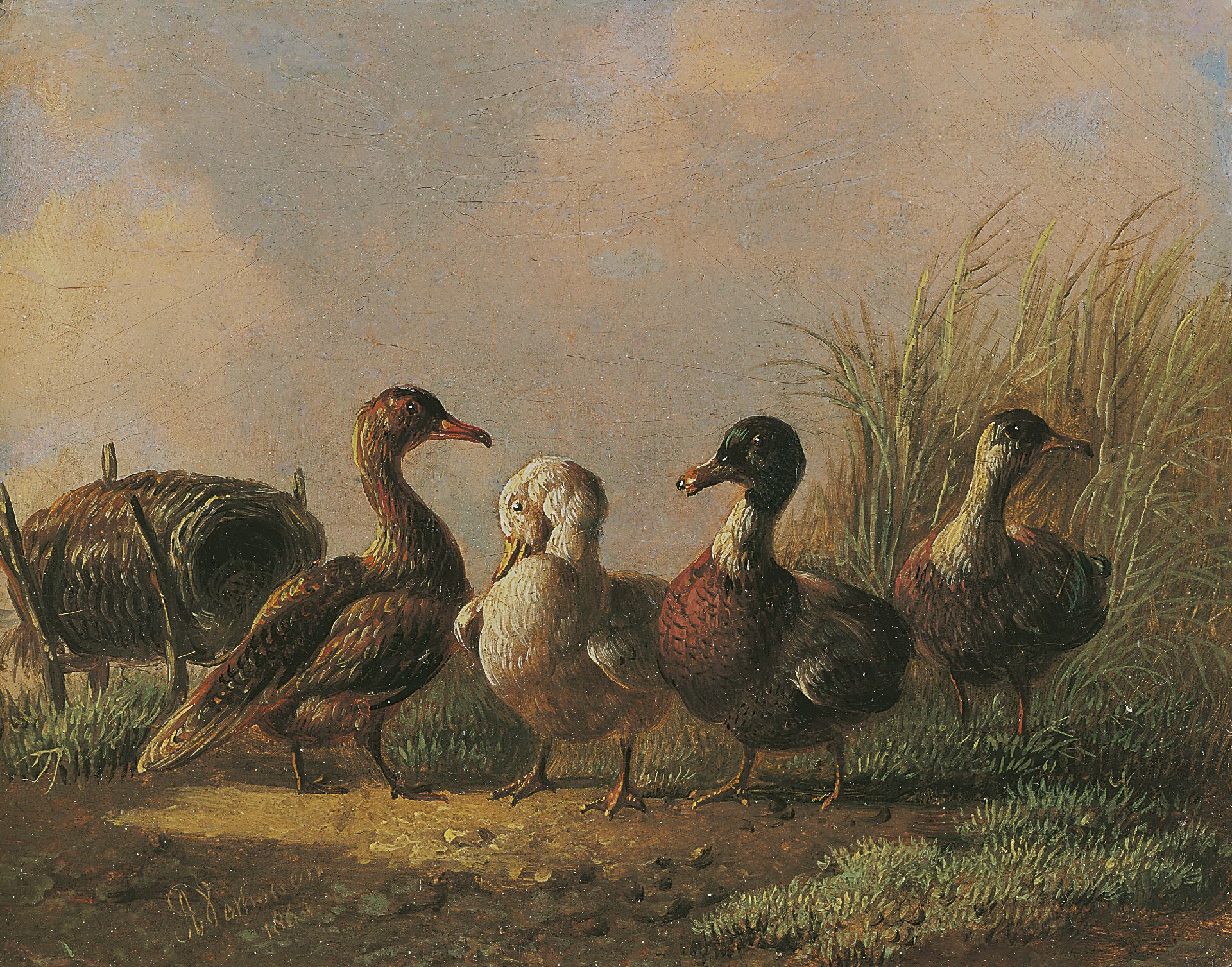 Albertus Verhoesen Kunstwerk • Gemälde • zuvor zu verkaufen Four ducks