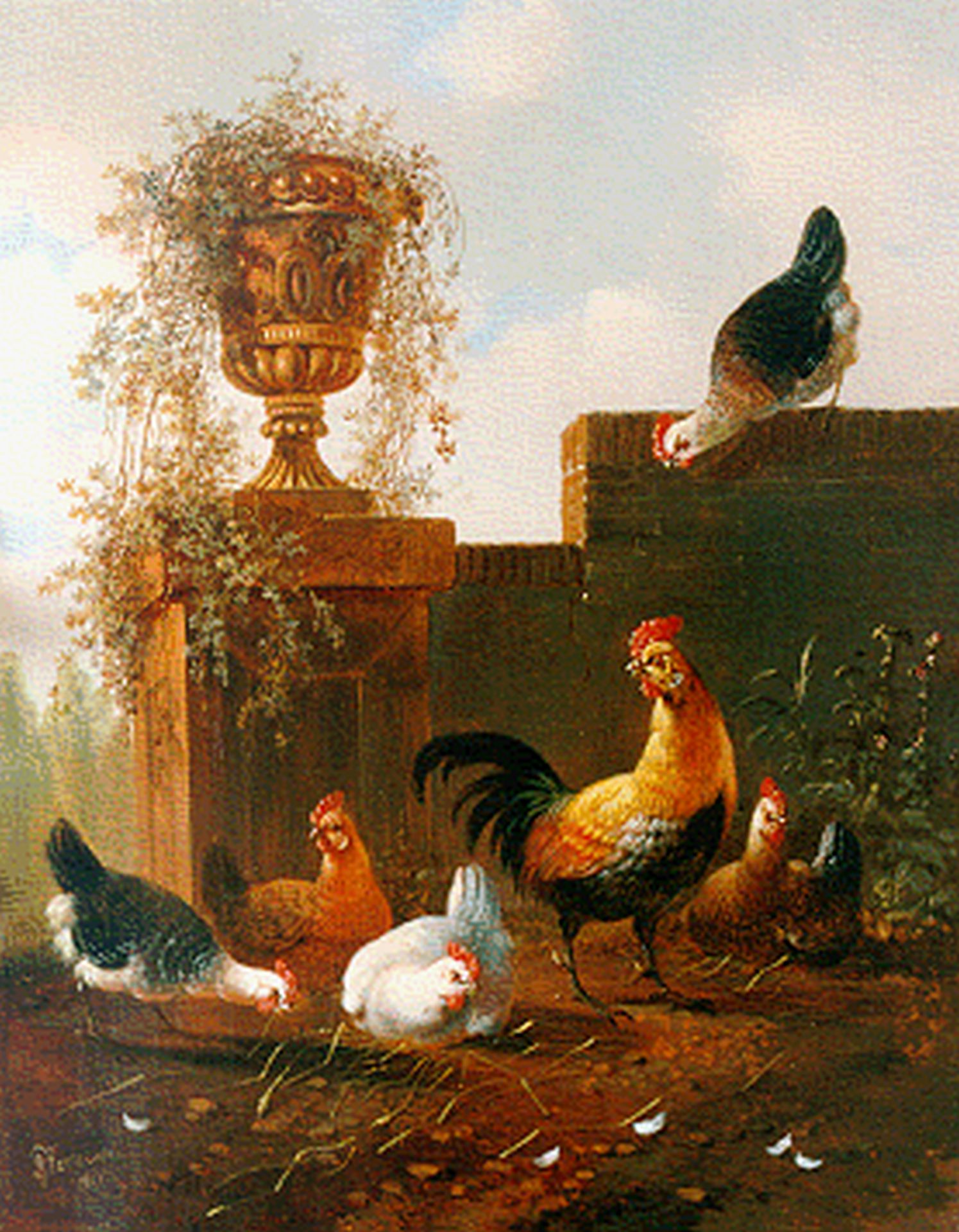 Albertus Verhoesen Kunstwerk • Gemälde • zuvor zu verkaufen Poultry in a classical landscape