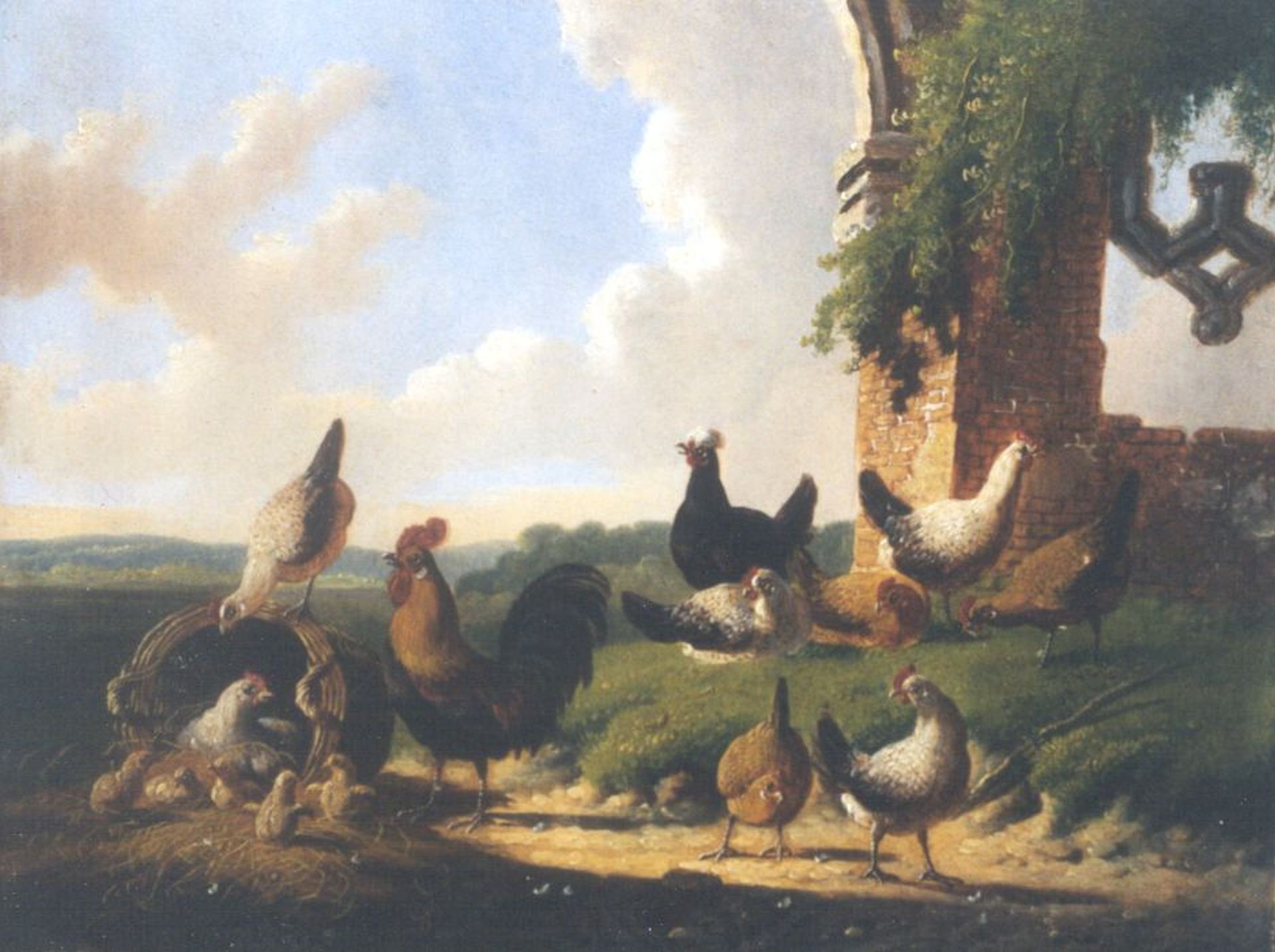 Albertus Verhoesen Kunstwerk • Gemälde • zuvor zu verkaufen Poultry in a classical landscape