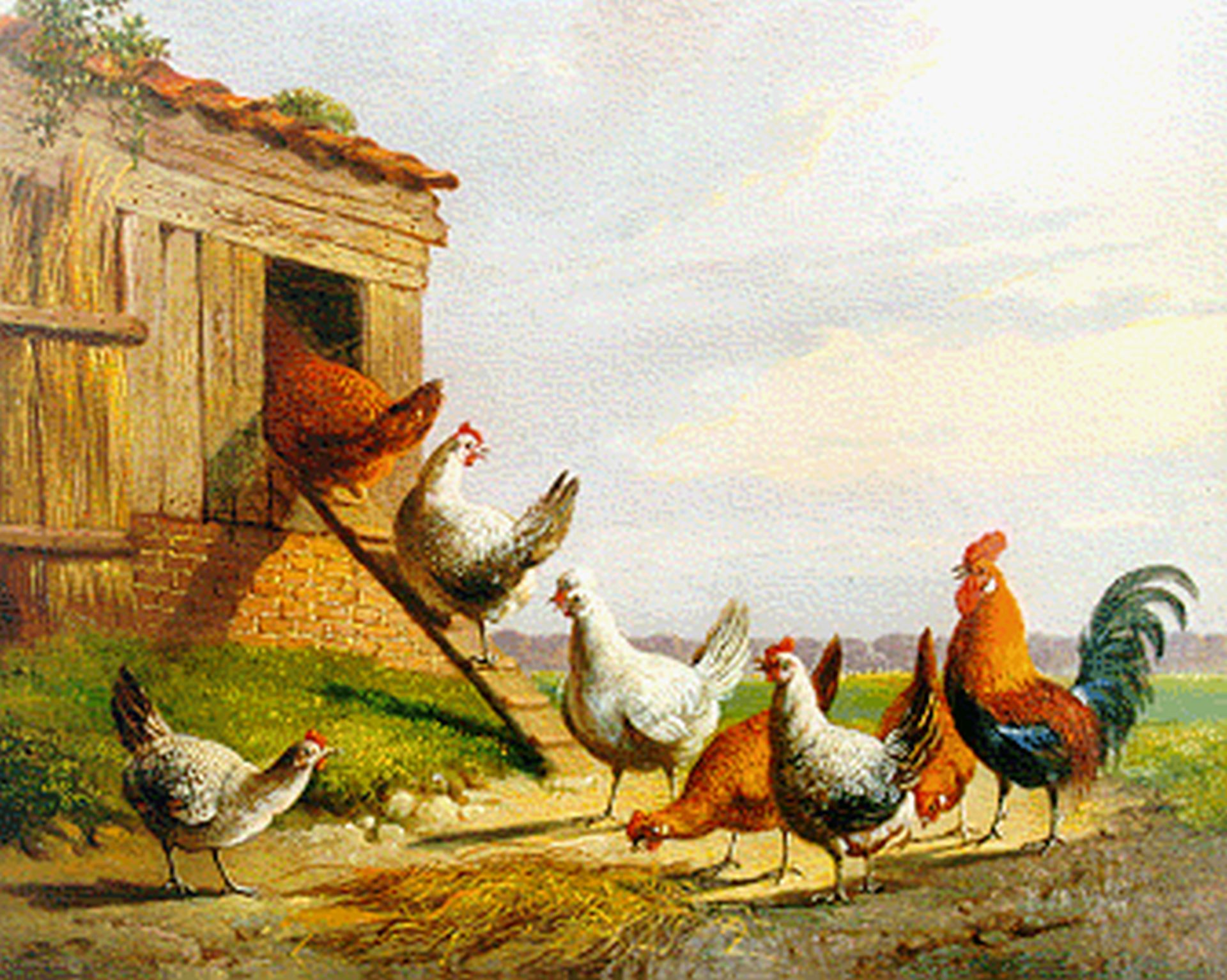 Albertus Verhoesen Kunstwerk • Gemälde • zuvor zu verkaufen Poultry in a landscape