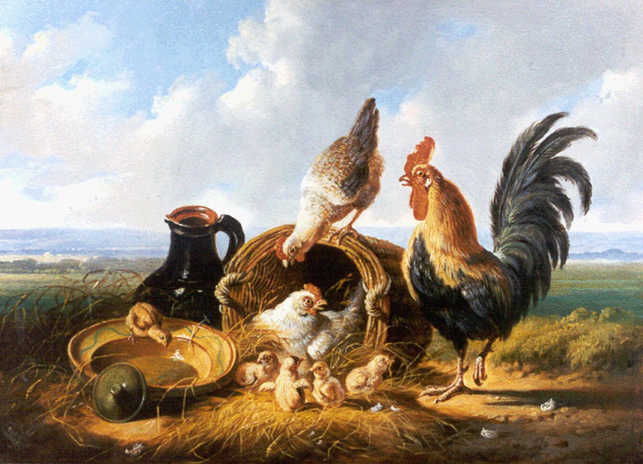Albertus Verhoesen Kunstwerk • Gemälde • zuvor zu verkaufen Poultry in an extensive landscape