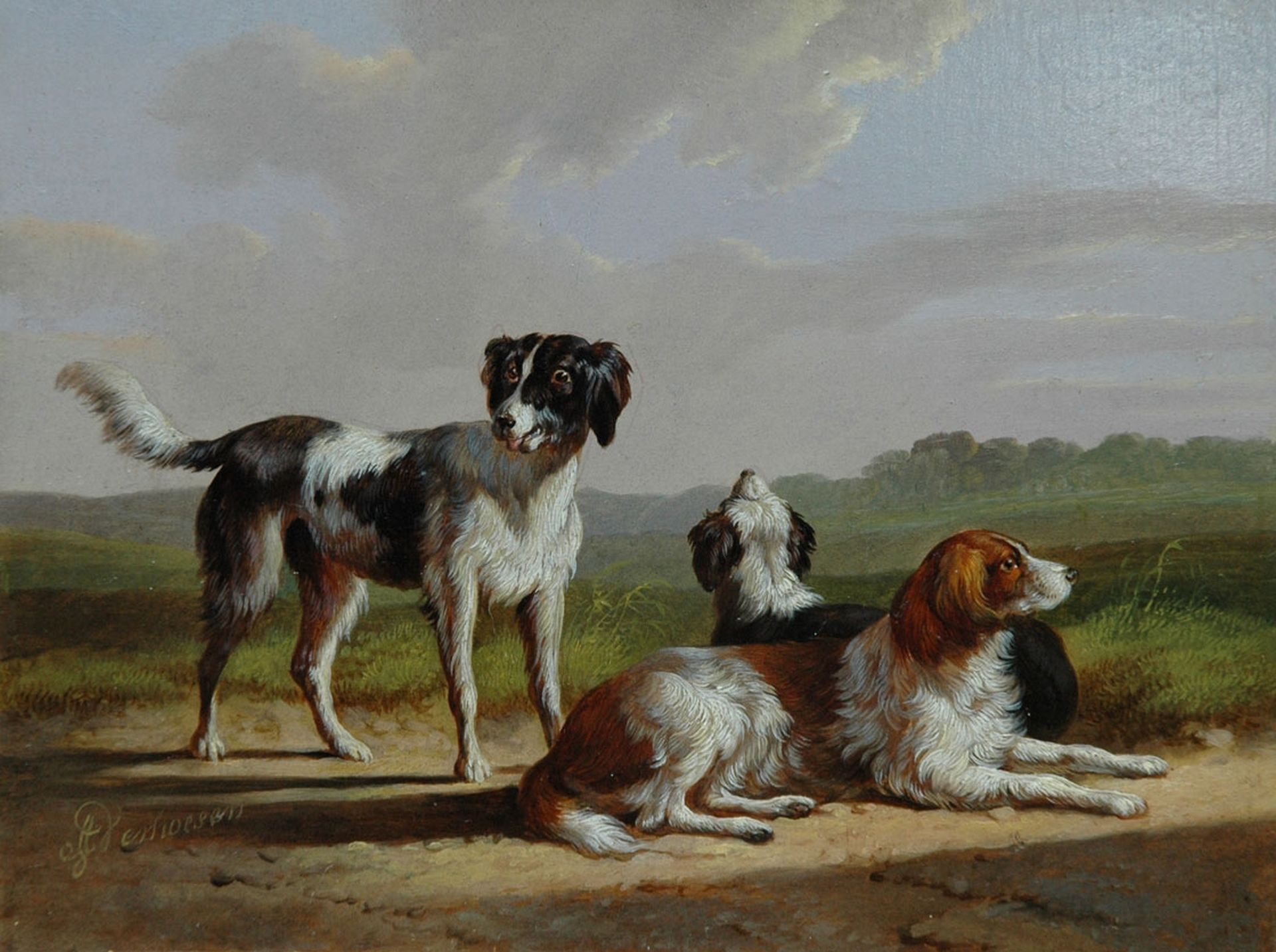 Three hounds in a landscape