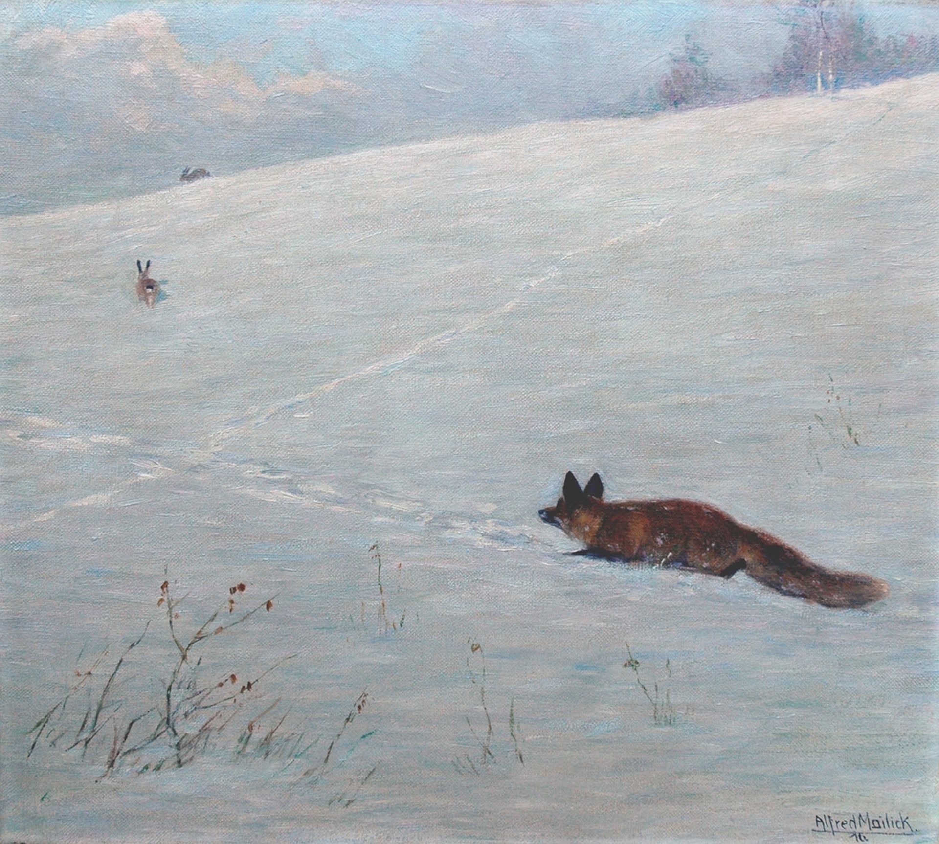 Alfred Mailick ist vor allem als Maler romantisierter impressionistischer Jagdszenen bekannt. Seine Ausbildung erhielt er an der Akademie in Dresden. Er malte auch Landschaften, in denen es kein Wild zu jagen gab, und er fertigte Naturstudien von Vögeln und Insekten an. Mailick, der bis 1906 Meilick hieß, machte sich auch als Buchillustrator und Postkartengestalter einen Namen. Im Museum Haus Lawaczeck in Nieukerk, Deutschland, gleich hinter der Grenze bei Venlo, wurde ein Raum mit Jagdstücken von Maileck eingerichtet. Sein Sohn Erik trat in die Fußstapfen seines Vaters und wurde als Maler realistisch-impressionistischer Tierbilder (Jagd, Wild) bekannt.