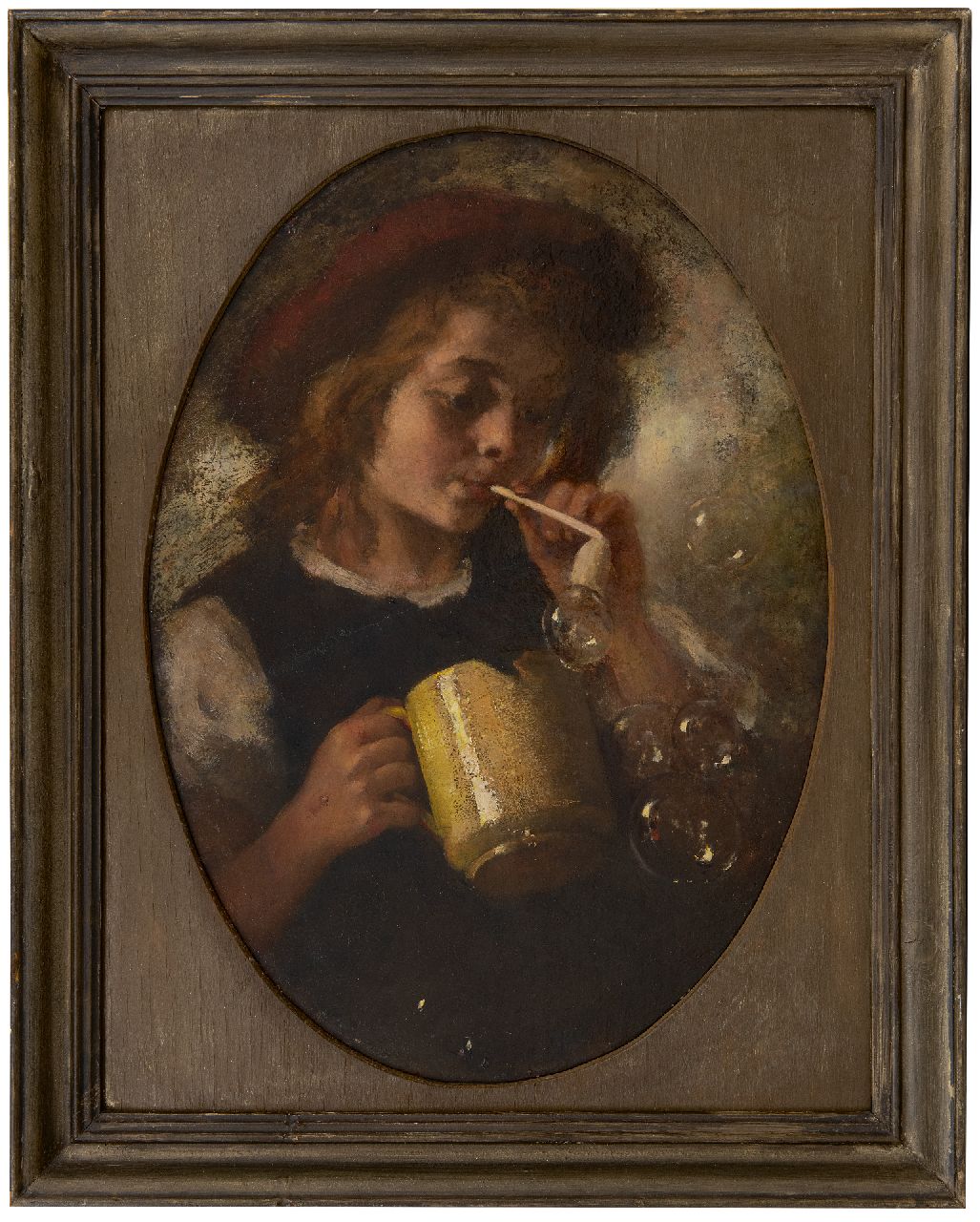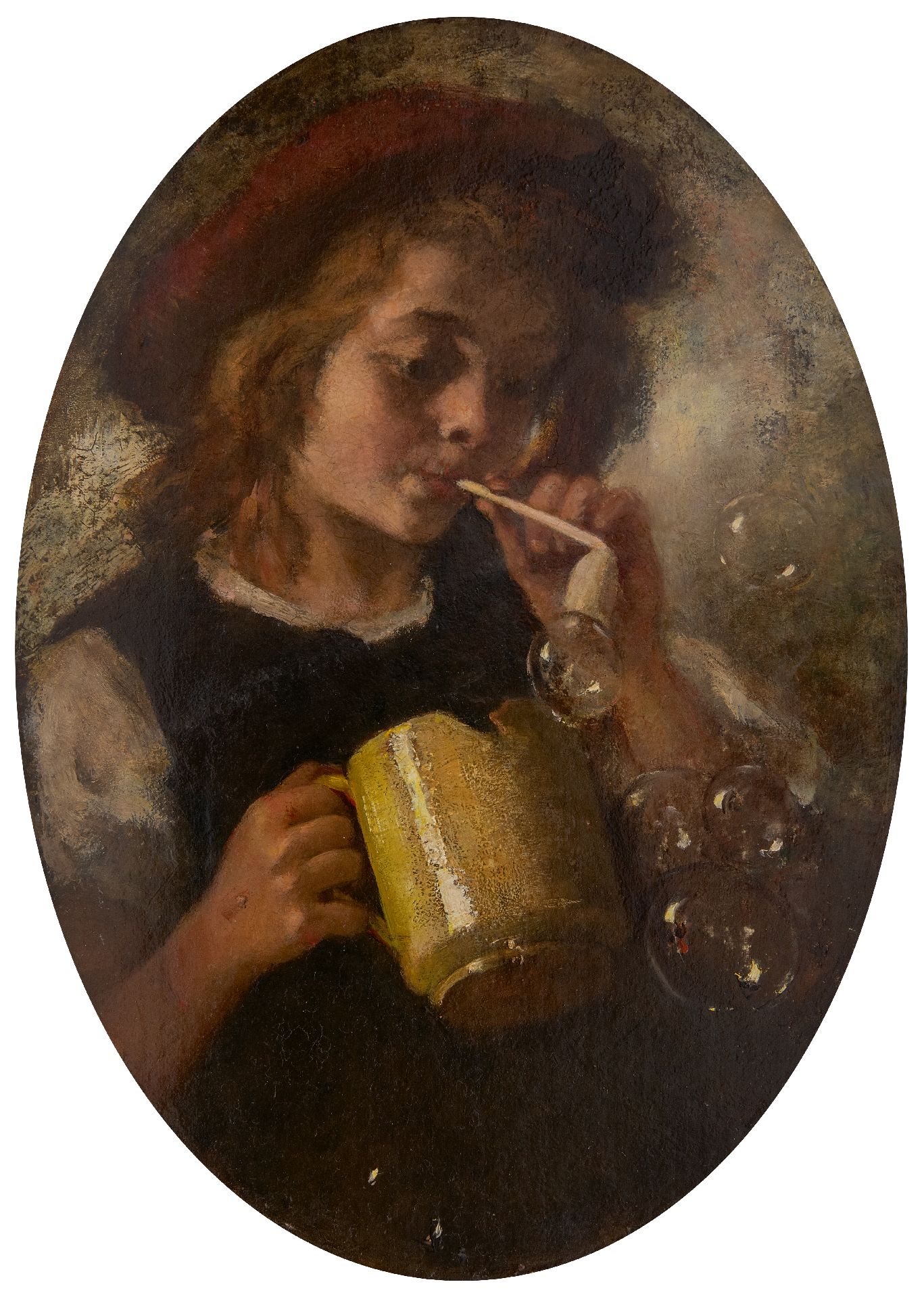 André Broedelet Kunstwerk • Gemälde • zu verkaufen Junge, der Seifenblasen bläst