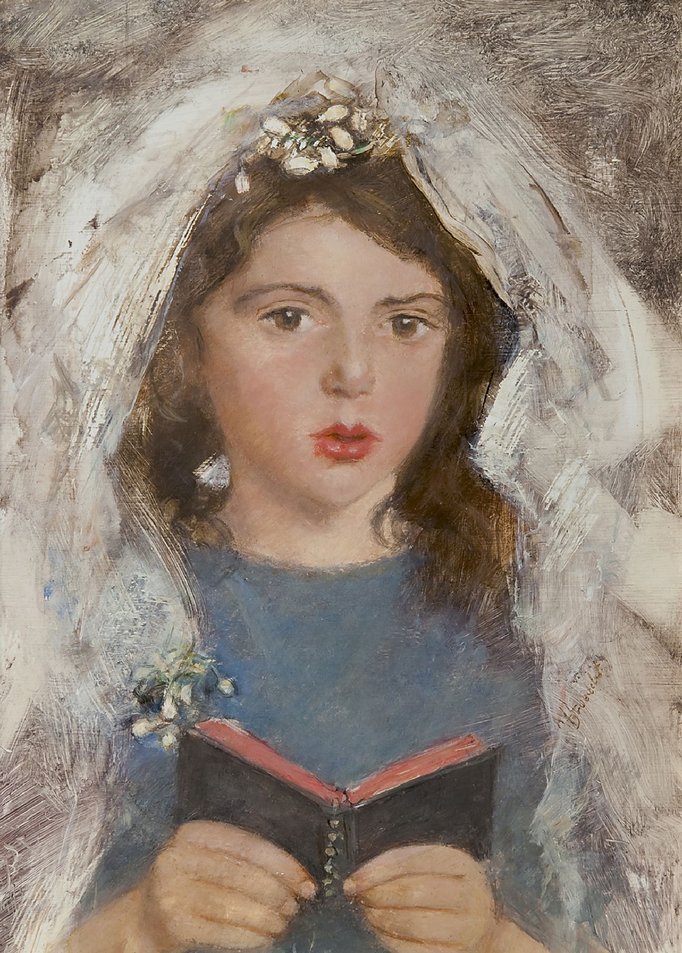 André Broedelet Kunstwerk • Gemälde • zuvor zu verkaufen Kommunikantin Emmetje de Leeuw