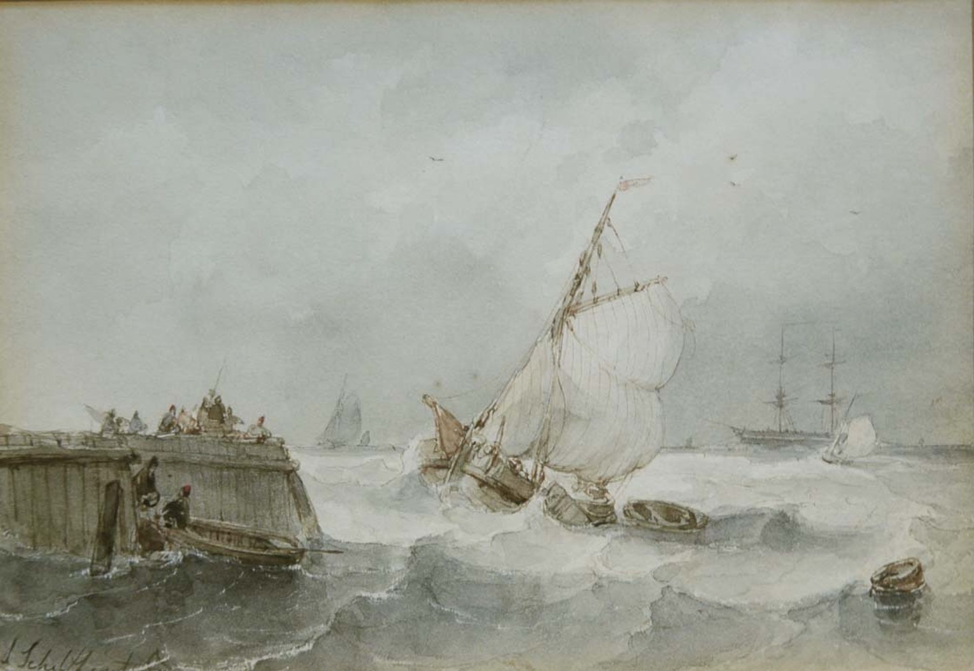 Andreas Schelfhout | Segelschiff und ein Raddampfer auf den Wässern, Öl auf Holz, 67,6 x 90,6 cm, Unterzeichnet u.l. und datiert 1845