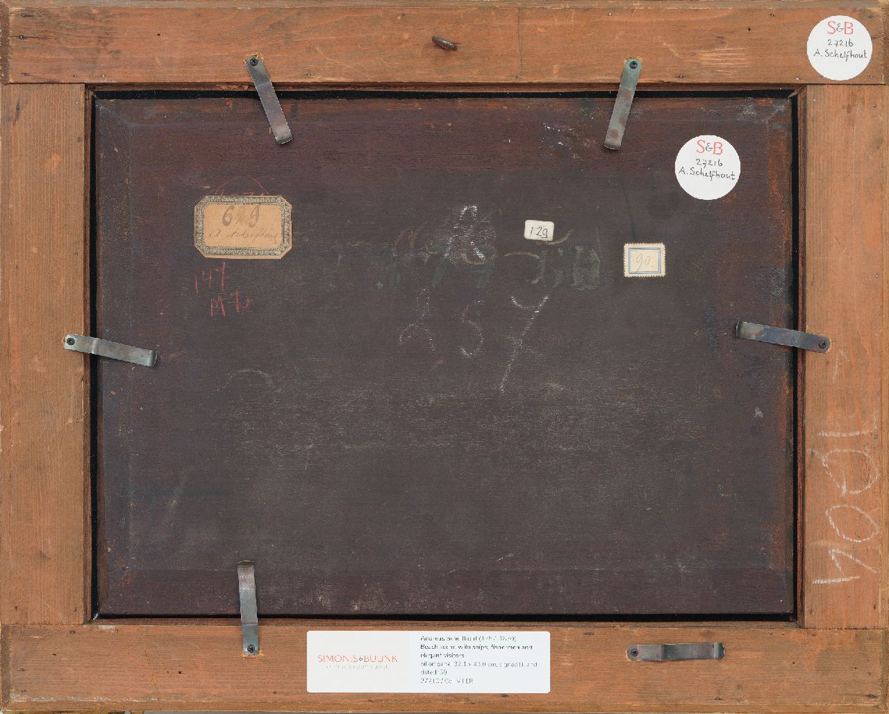 Schelfhout arbeitete oft an der Küste von Scheveningen und war einer der ersten Maler des 19. Jahrhunderts, der sich auf niederländische Strandszenen spezialisierte. Hier führte er eine Neuheit ein: elegante Spaziergänger, die sich am Strand unter Fischhändler mischen. Um diese Zeit entwickelte sich die Freizeitgestaltung im Freien langsam. Schelfhout liebte diese Kontraste. Er malte die Strandszene in kleinen, technisch versierten Anekdoten.