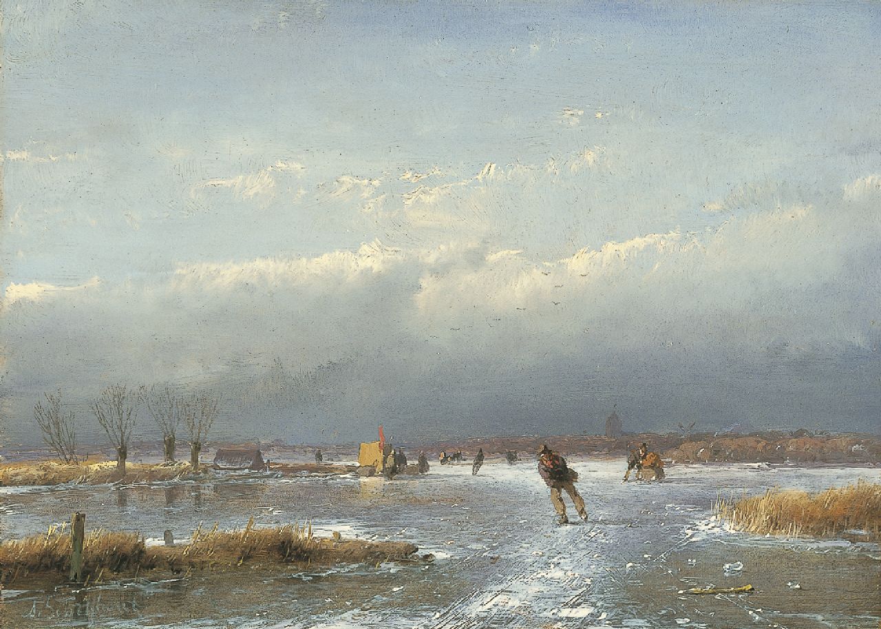 Schon zu seiner Zeit waren die winterlichen Eisansichten und Sommerlandschaften von Andreas Schelfhout sehr beliebt. Er malte sie sorgfältig, mit grossem technischem Raffinement und mit einem starken Gefühl für anekdotisches Detail. Das trockene frostkalte Wetter eines Wintertages und die süsse Athmosphere einer sommerlichen Landschaft konnte er als keiner wiedergeben. Manchmal wurden seine Werke vom Viehmaler Pieter Gerardus van Os ausgestattet. Schelfhout ist zusammen mit Barend Cornelis Koekkoek der wichtigste romantische Landschaftsmaler und hatte viele Schüler, unter denen Charles Leickert, Lodewijk Johannes Kleijn, Nicolaas Roosenboom und überraschenderweise auch Jan Willem van Borselen und Johan Barthold Jongkind.