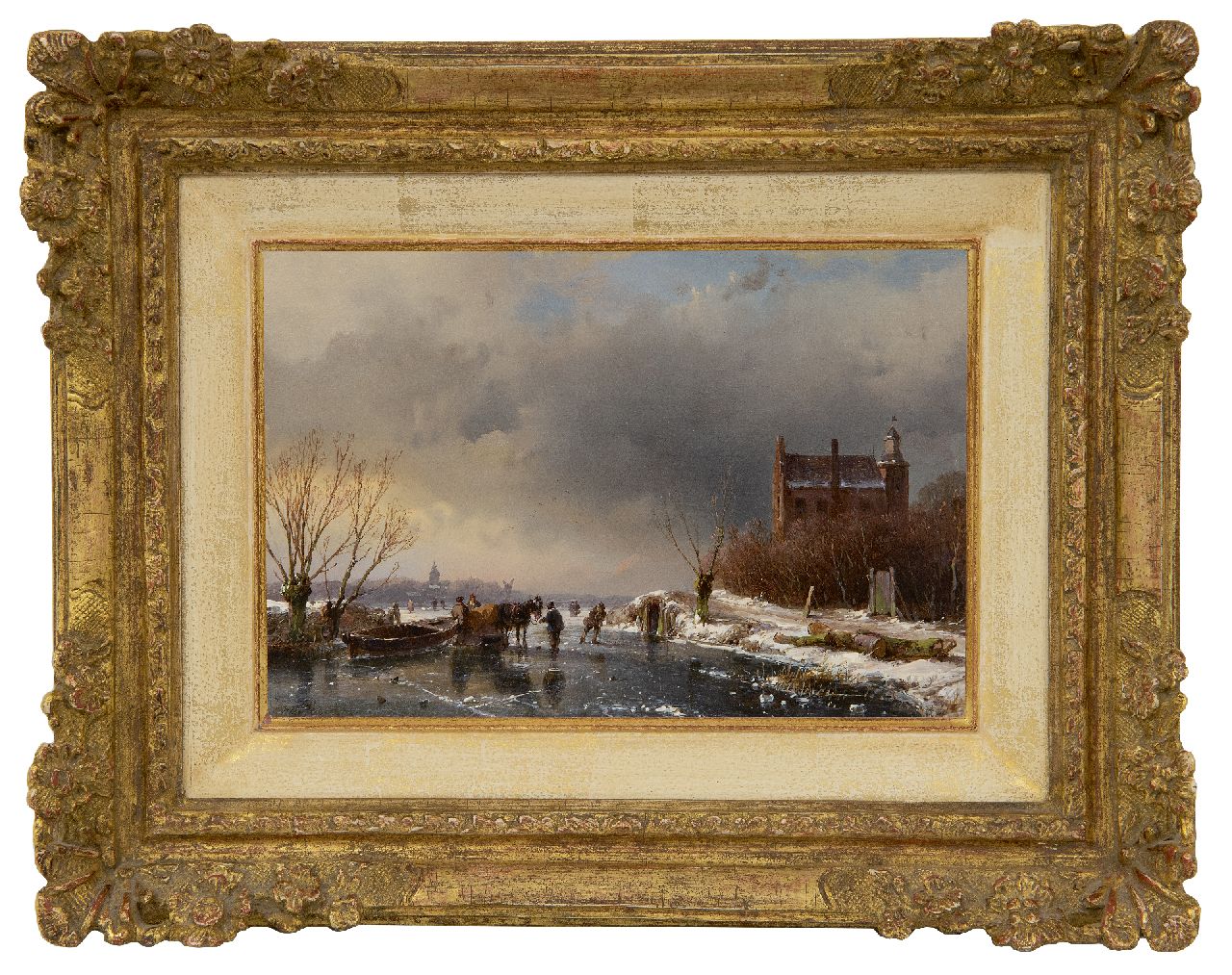 Andreas Schelfhout Kunstwerk • Gemälde • zuvor zu verkaufen Eisansicht mit Schlittschuhläufern bei einem Schloss