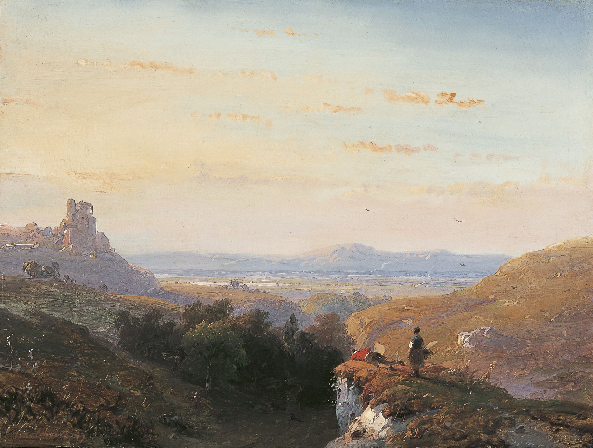 Figures in a panoramic landscape