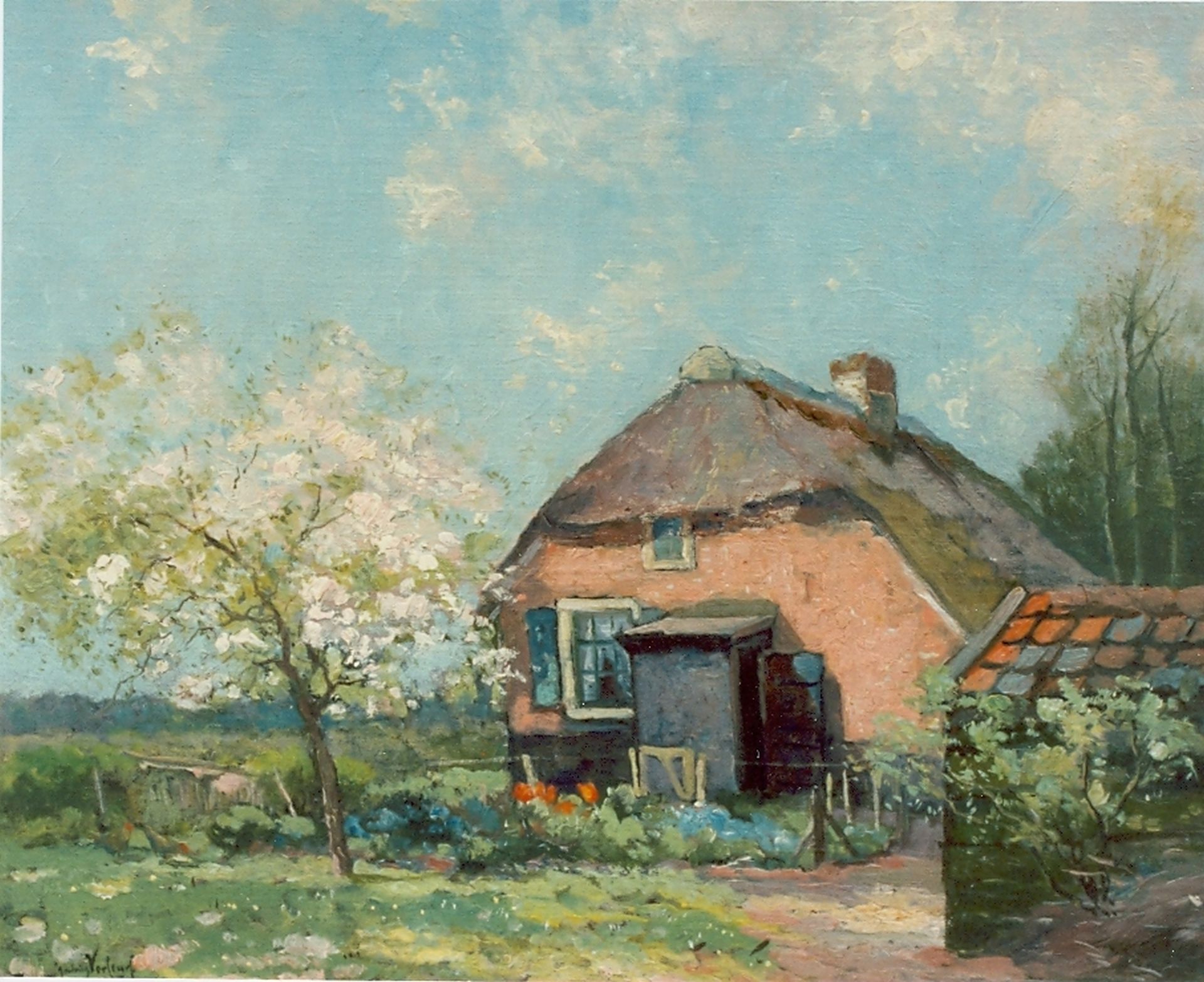 Verleur A.  | Andries Verleur, Farm in spring, Öl auf Leinwand auf Holz 38,5 x 48,0 cm, signed l.l. und dated 1925