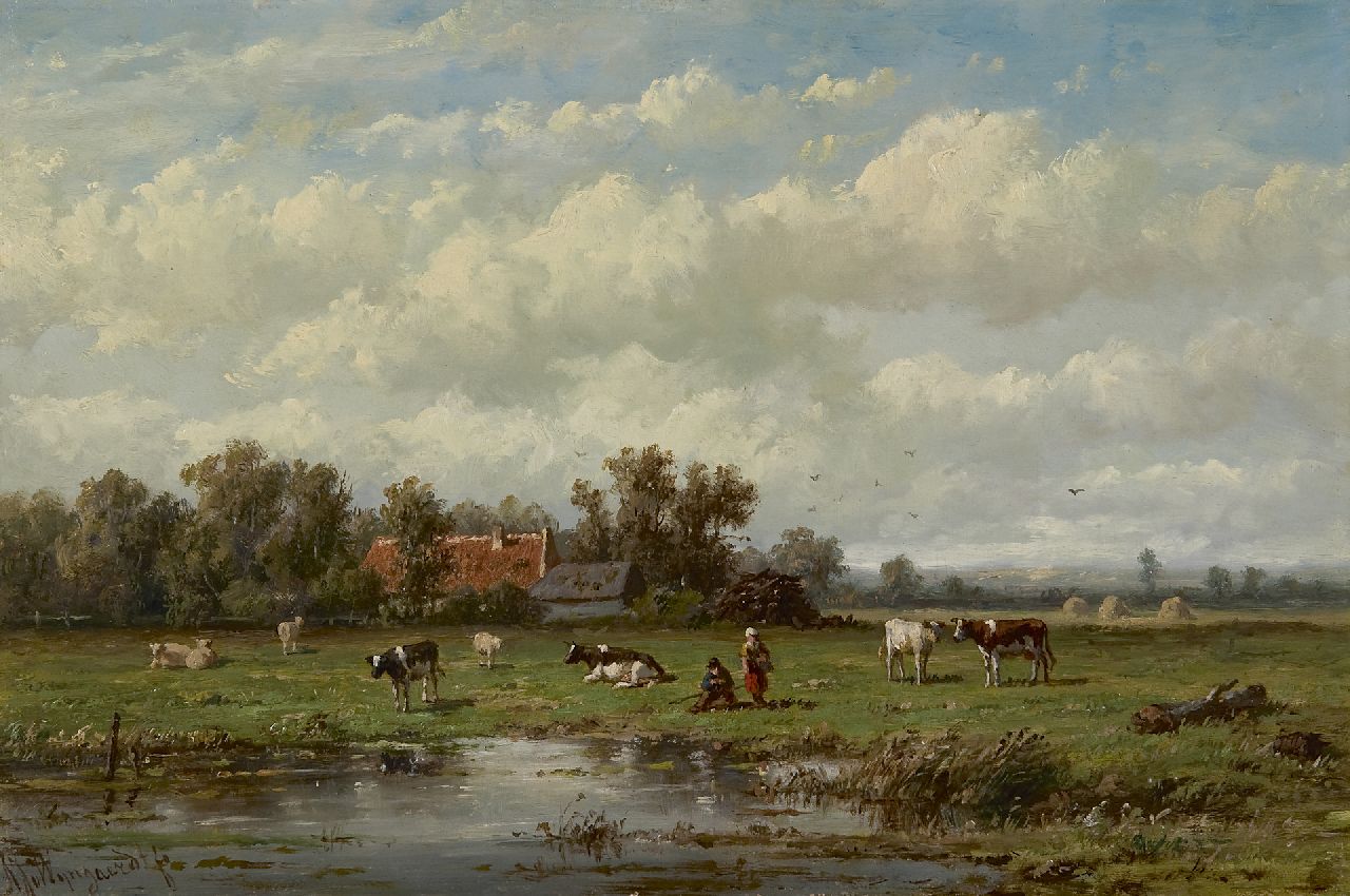 Anthonie Jacobus van Wijngaerdt Kunstwerk • Gemälde • zuvor zu verkaufen A meadow with cattle