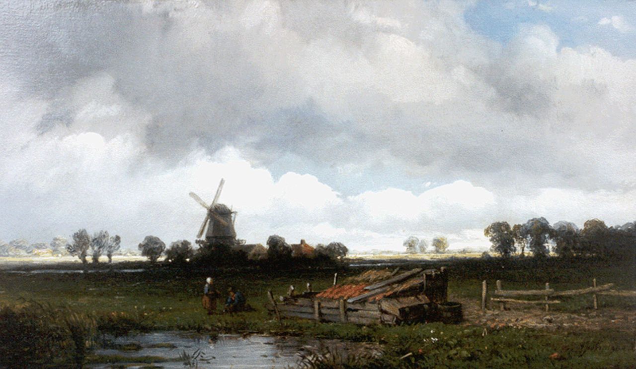 Anthonie Jacobus van Wijngaerdt Kunstwerk • Gemälde • zuvor zu verkaufen An extensive landscape, a windmill beyond