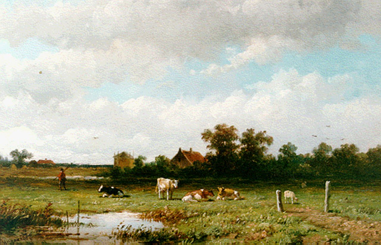 Anthonie Jacobus van Wijngaerdt Kunstwerk • Gemälde • zuvor zu verkaufen Cattle in a meadow