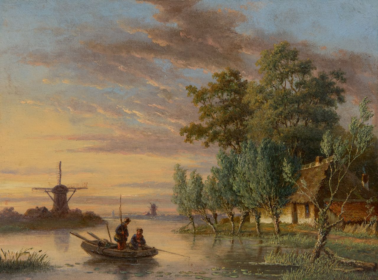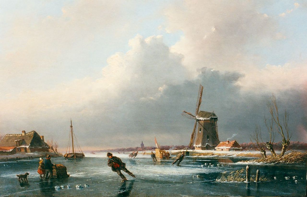 Anthony Andreas de Meijier Kunstwerk • Gemälde • zuvor zu verkaufen Skaters on the ice near a windmill